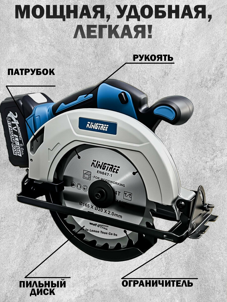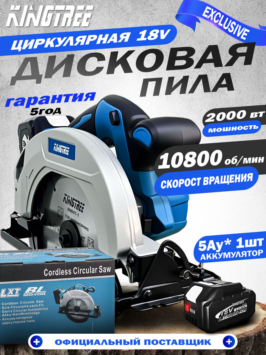 Купить Kingtree 7″ Бесщеточная Портативная Циркулярная Пила С Защитным Кожухом(1 АКБ 5,0 Ач, гофроящик) с доставкой по всей России.