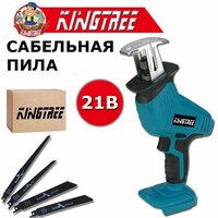 KingTree Аккумуляторная ручная сабельная пила 21В, 4000 об/мин, ход 15мм, 4 лезвия, 0 АКБ , электропила, для сада.