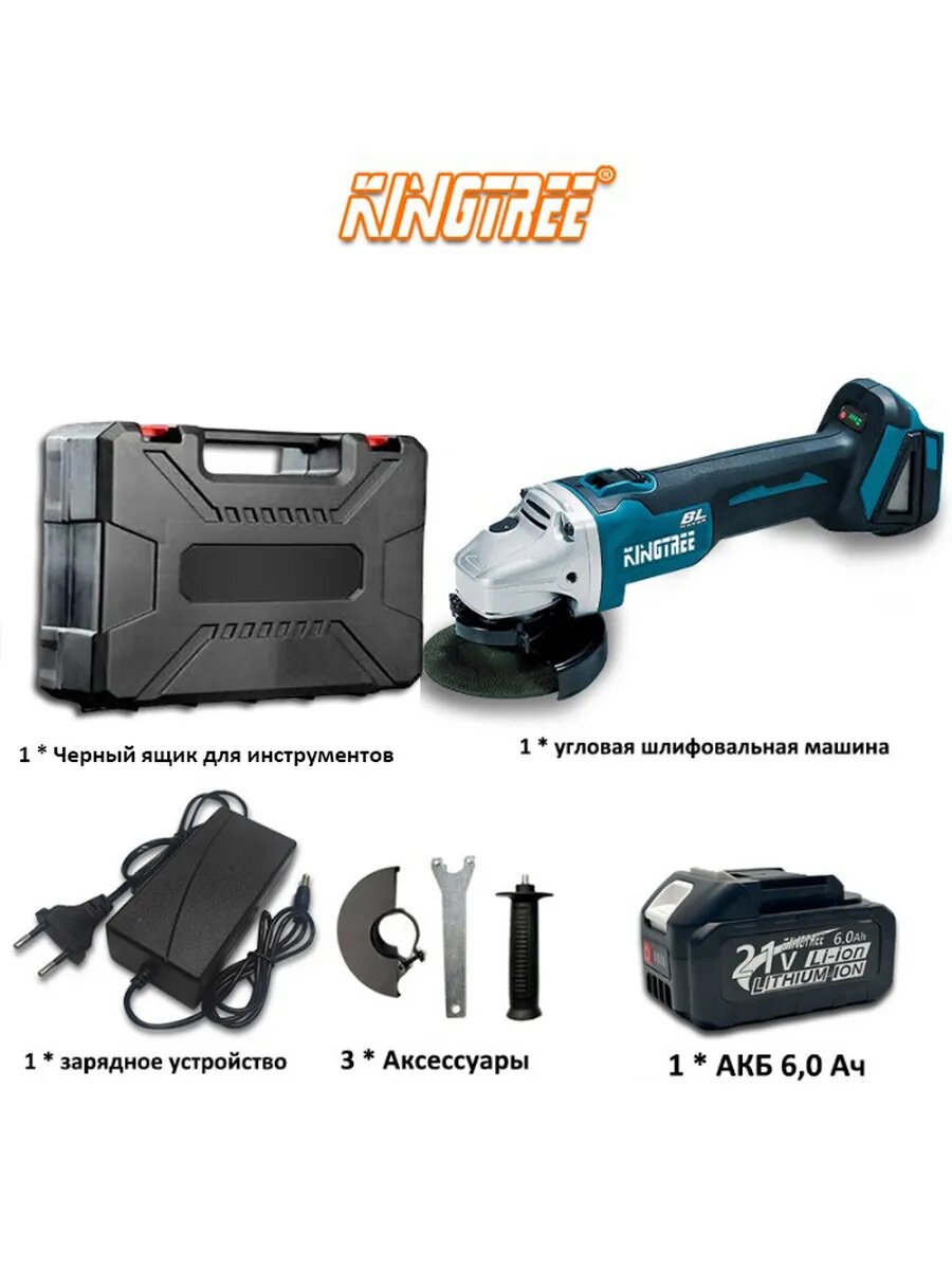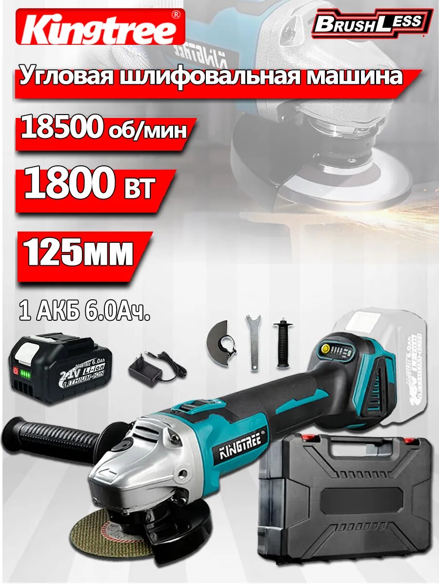 Kingtree Бесщеточная Ушм (Болгарка) Аккумуляторная 125мм,1800Вт С Регулировкой Оборотов (1 АКБ 6,0 Ач): сравнение цен, характеристики, фото, актуальное наличие и цены.