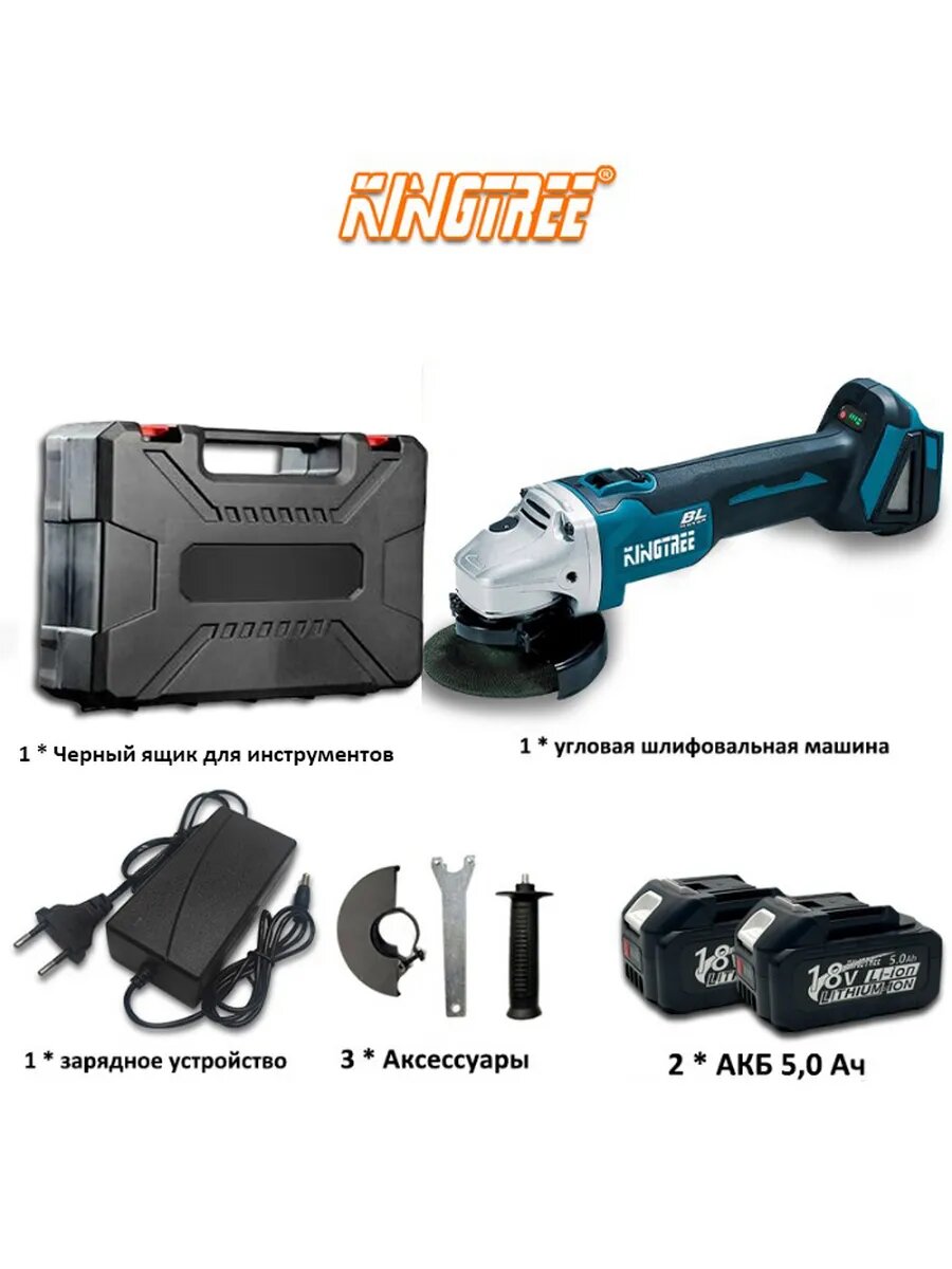 Kingtree Бесщеточная Ушм (Болгарка) Аккумуляторная 125мм,1800Вт С Регулировкой Оборотов (2 АКБ 5,0 Ач): сравнение цен, характеристики, фото, актуальное наличие и цены.