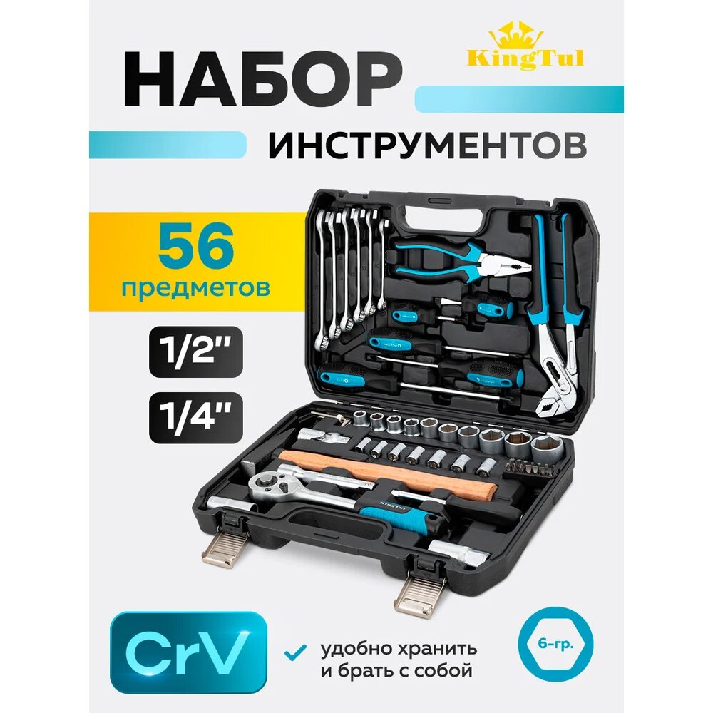 KingTul Набор инструментов 56 предметов 1/4, 1/2 KT-KT56(65815): сравнение цен, характеристики, фото, актуальное наличие и цены.
