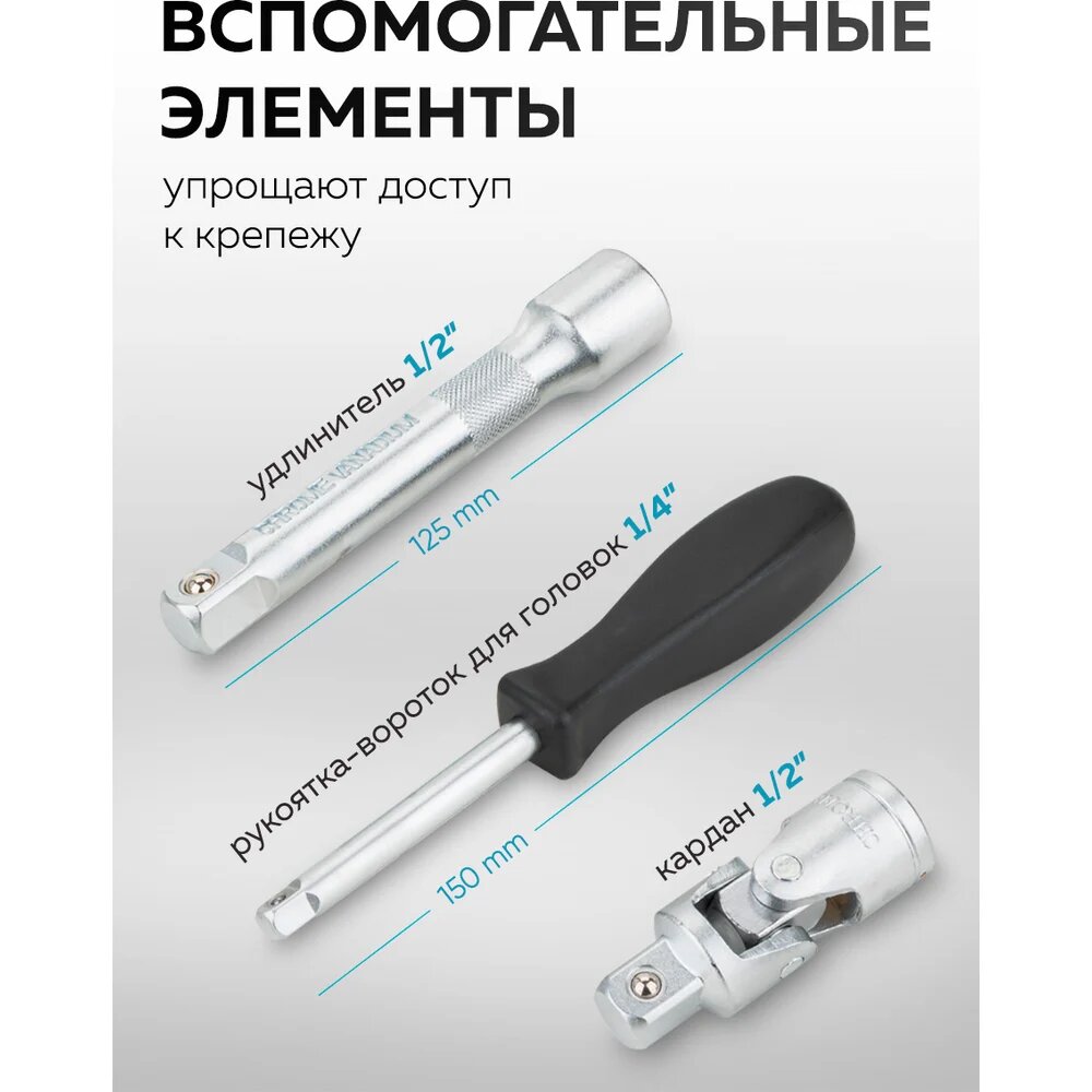 Набор инструментов Rockforce RF-41421-5(28514) 1/2", 1/4", 3/8" с 6-гранными головками, 142 предмета