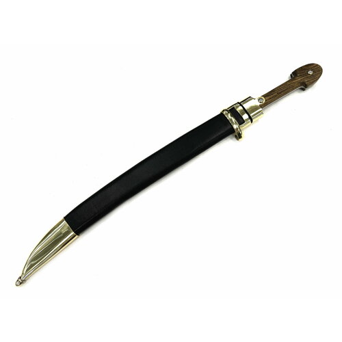 Общая длина в ножнах: 630 мм Общая длина без ножен: 590 мм Длина клинка: 430 мм Наибольшая ширина клинка мм. 33-35 Вес клинка с рукоятью 513гр. Сталь кованная, пружинно рессорная 65Г Закалка клинка уставная Рукоять орех. Литье: латунь Обтянуты натуральной кожей. Сборка ручная. Без клея и сварки. Комплектация Изделие кинжал в кожаных ножнах Производство: Россия, г. Волгоград Сертификат соответствия в комплекте