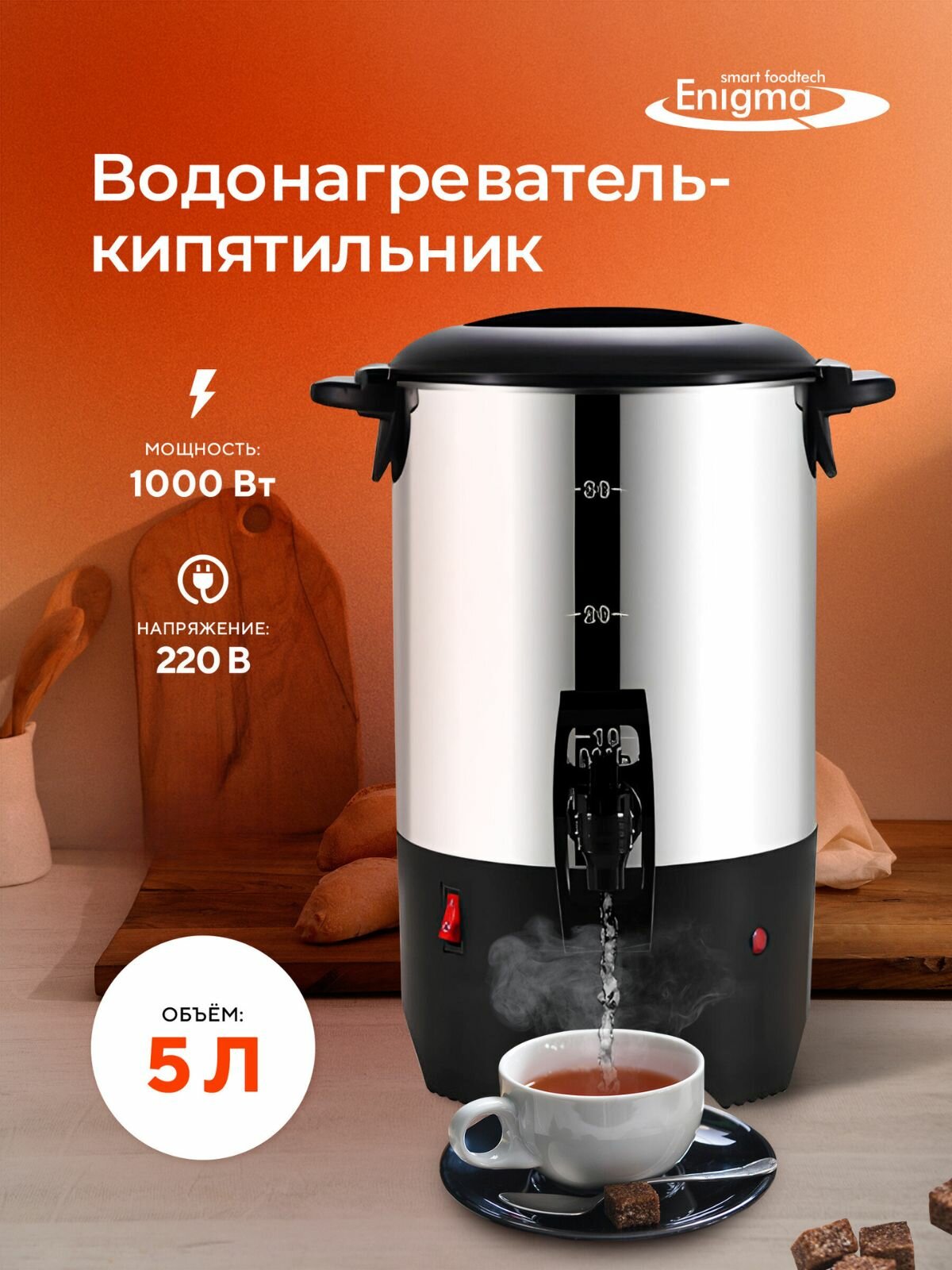 Пластиковые ручки корпуса и крышки не нагреваются. Корпус имеет одну стенку. Кипятильники-термопоты Enigma: Идеальное решение для вашего дома и офисаКипятильники-термопоты Enigma — это современные устройства, сочетающие в себе функции электрического чайника и термоса, обеспечивающие непрерывный доступ к горячей воде. Они становятся незаменимыми помощниками в быту и на работе благодаря своей многофункциональности, удобству использования и высокому уровню безопасности. В этом SEO-тексте мы расскажем о ключевых преимуществах кипятильников-термопотов Enigma и почему они должны стать частью вашего повседневного обихода. Преимущества кипятильников-термопотов EnigmaУдобство использования: Кипятильники-термопоты Enigma просты в эксплуатации благодаря интуитивно понятному интерфейсу и множеству удобных функций. Они оснащены электронным контролем температуры, что позволяет выбрать оптимальный режим нагрева воды для приготовления чая, кофе или других горячих напитков. Экономия времени и энергии: Благодаря большому объему резервуара, который может достигать 5 литров и более, кипятильники-термопоты Enigma обеспечивают непрерывный доступ к горячей воде в течение дня. Это особенно важно для офисов и больших семей, где требуется постоянный нагрев воды. Система энергосбережения и поддержания тепла позволяет существенно сократить затраты на электроэнергию. Высокий уровень безопасности: Кипятильники-термопоты Enigma оснащены современными системами безопасности, включая защиту от перегрева, автоматическое отключение и защиту от сухого кипячения. Эти функции гарантируют безопасную эксплуатацию устройства даже при длительном использовании. Стильный дизайн и материалы высокого качества: Корпус кипятильников-термопотов Enigma изготовлен из высококачественных материалов, обеспечивающих долговечность и стойкость к повреждениям. Стильный и эргономичный дизайн устройства идеально впишется в любой интерьер, будь то кухня, офис или зона отдыха. Многофункциональность: Помимо основной функции нагрева и поддержания температуры воды, многие модели кипятильников-термопотов Enigma обладают дополнительными возможностями, такими как таймер, дисплей с индикацией температуры, режимы быстрой фильтрации и функция памяти. Это делает их универсальными устройствами для любого дома или офиса. Области применения кипятильников-термопотов EnigmaДома: Кипятильники-термопоты Enigma станут отличным дополнением к кухонной технике, обеспечивая постоянный доступ к горячей воде для приготовления любимых напитков, детских смесей и даже быстрого приготовления пищи. Офисы: В условиях офиса, где важно поддерживать высокий уровень продуктивности и уюта для сотрудников, кипятильники-термопоты Enigma помогут организовать удобное место для отдыха и кофе-брейка, обеспечивая сотрудников горячей водой на протяжении всего рабочего дня. Коммерческие заведения: Эти устройства отлично подходят для использования в различных коммерческих заведениях, таких как кафе, рестораны и гостиницы, где необходимо быстрое и постоянное обеспечение горячей водой для клиентов. Кипятильники-термопоты Enigma — это надежные и многофункциональные устройства, которые упрощают повседневную жизнь, обеспечивая постоянный доступ к горячей воде. Их использование позволяет сэкономить время и энергию, а так