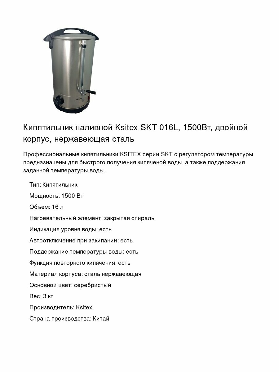 Кипятильник наливной Ksitex SKT-016L, 1500Вт, двойной корпус, нержавеющая сталь: сравнение цен, характеристики, фото, актуальное наличие и цены.