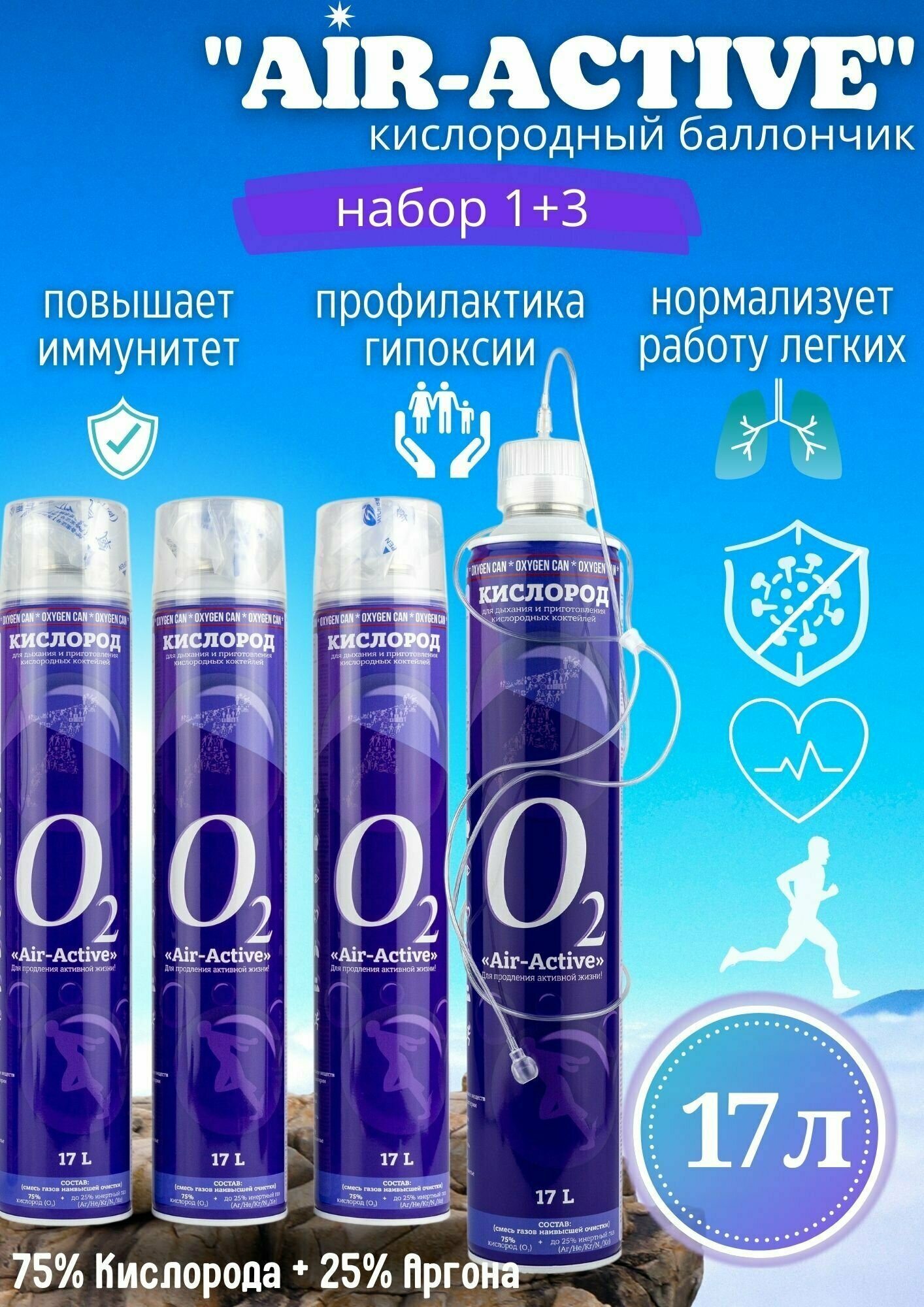 Купить Кислородный баллончик AIR-ACTIVE, 17 л (набор 4 шт.), назальная канюля с доставкой по всей России. Кислородный баллончик AIR-ACTIVE, 17 л (набор 4 шт.), назальная канюля: сравнение цен, характеристики, фото, актуальное наличие и цены.