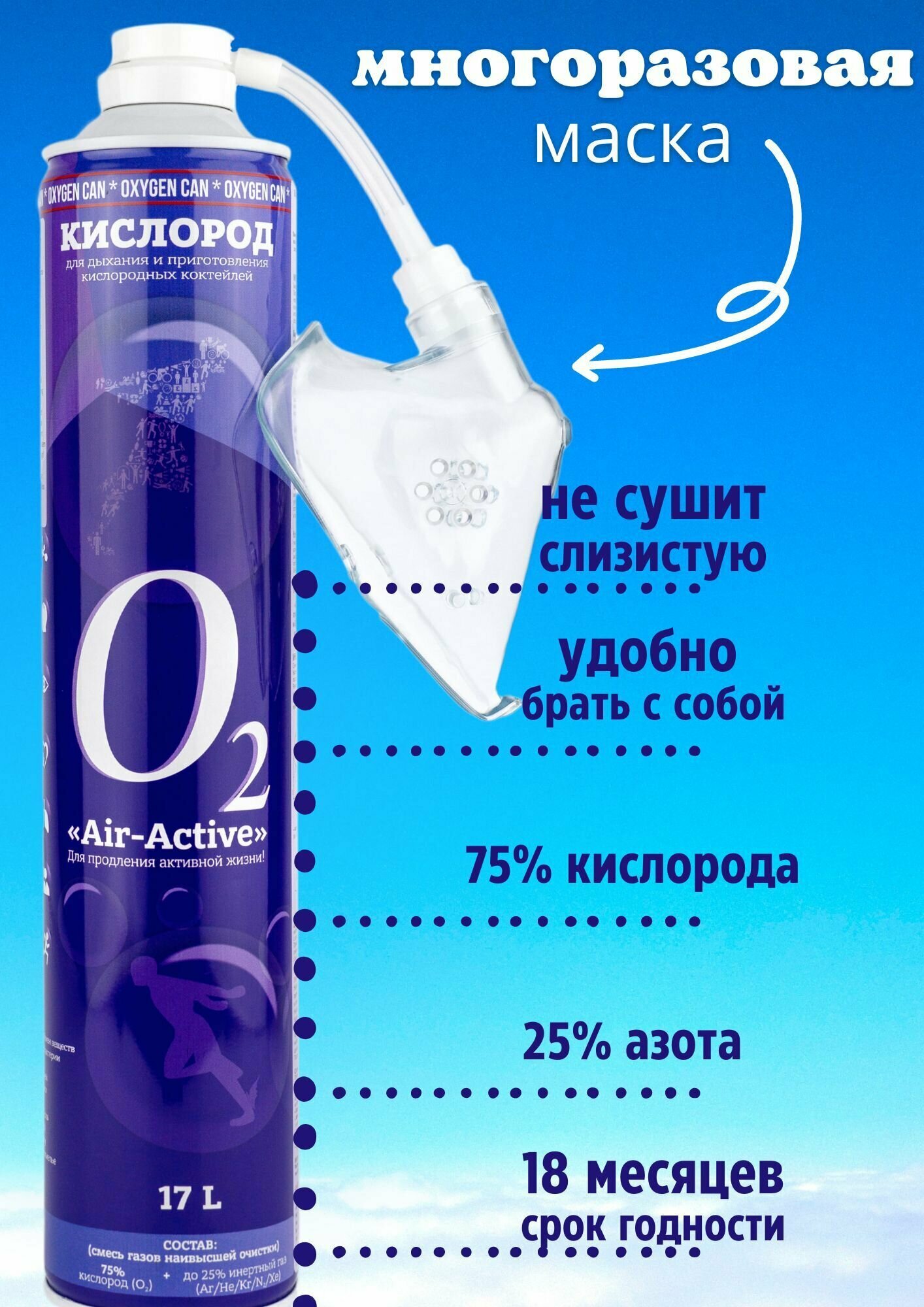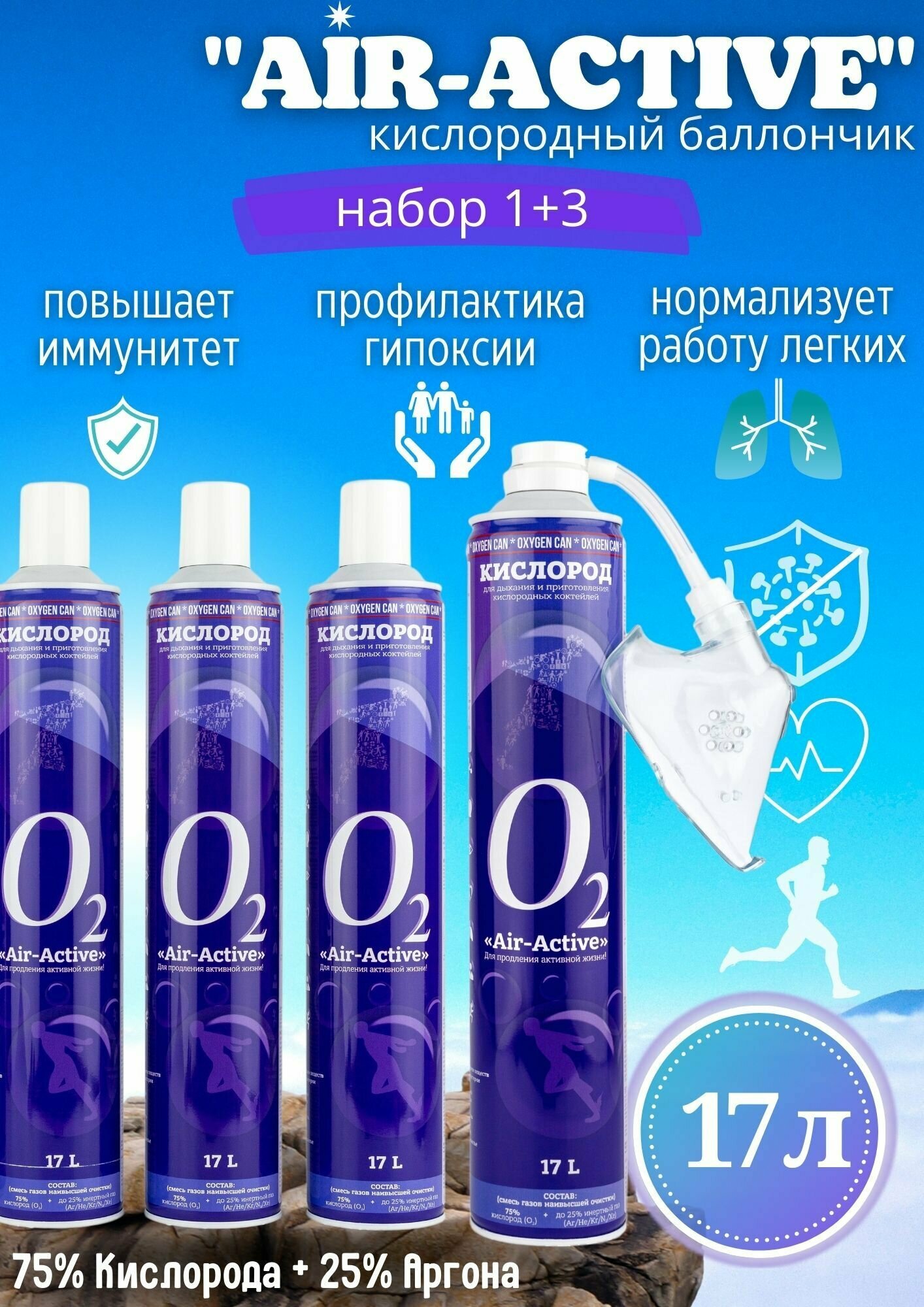 Купить Кислородный баллончик AIR-ACTIVE, 17 л (набор 4 шт.) с мягкой маской с доставкой по всей России. Кислородный баллончик AIR-ACTIVE, 17 л (набор 4 шт.) с мягкой маской: сравнение цен, характеристики, фото, актуальное наличие и цены.