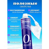 Кислородный баллончик "AIR-ACTIVE" содержит в составе 75% Кислорода и до 25% Аргона (благородный инертный газ). Это оптимальное сочетание газов высшей очистки не сушит слизистую оболочку и способствует лучшему усвоению кислорода организмом человека, а значит - более быстрой детоксикации (очищению) организма.