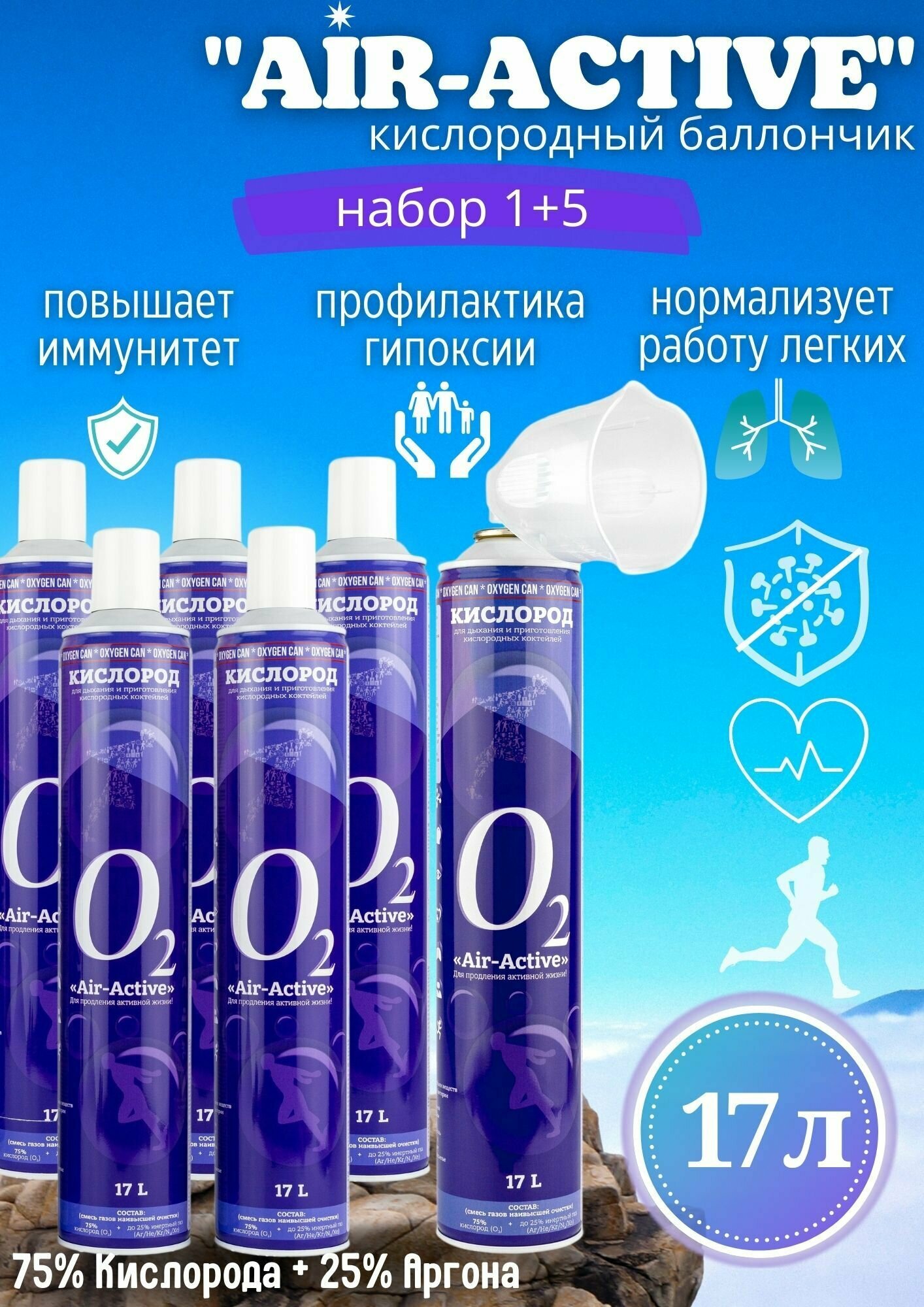 Кислородный баллончик AIR-ACTIVE, 17л с маской (набор 6 шт.): сравнение цен, характеристики, фото, актуальное наличие и цены.