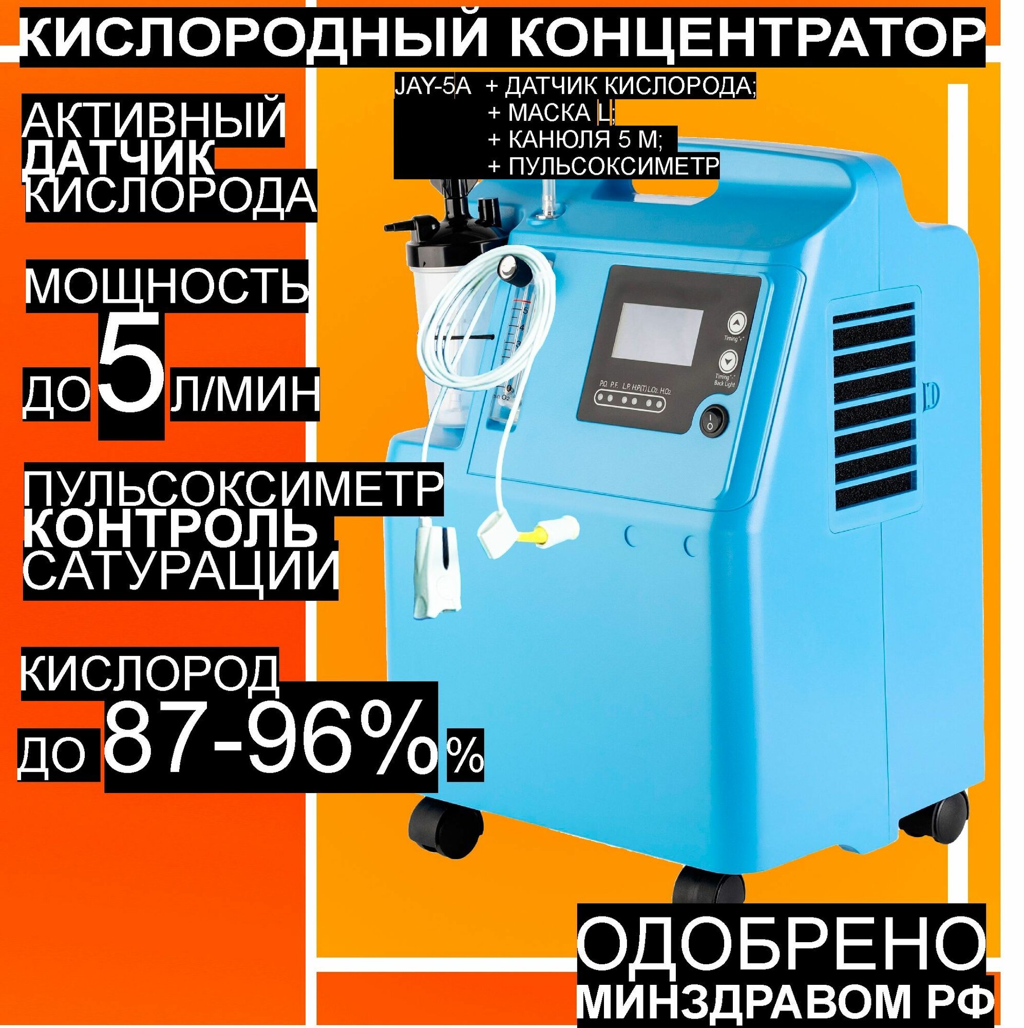 Купить Кислородный концентратор Longfian JAY-3A Синий +O2 +Пульсоксиметр +маска +канюля 5м с доставкой по всей России.