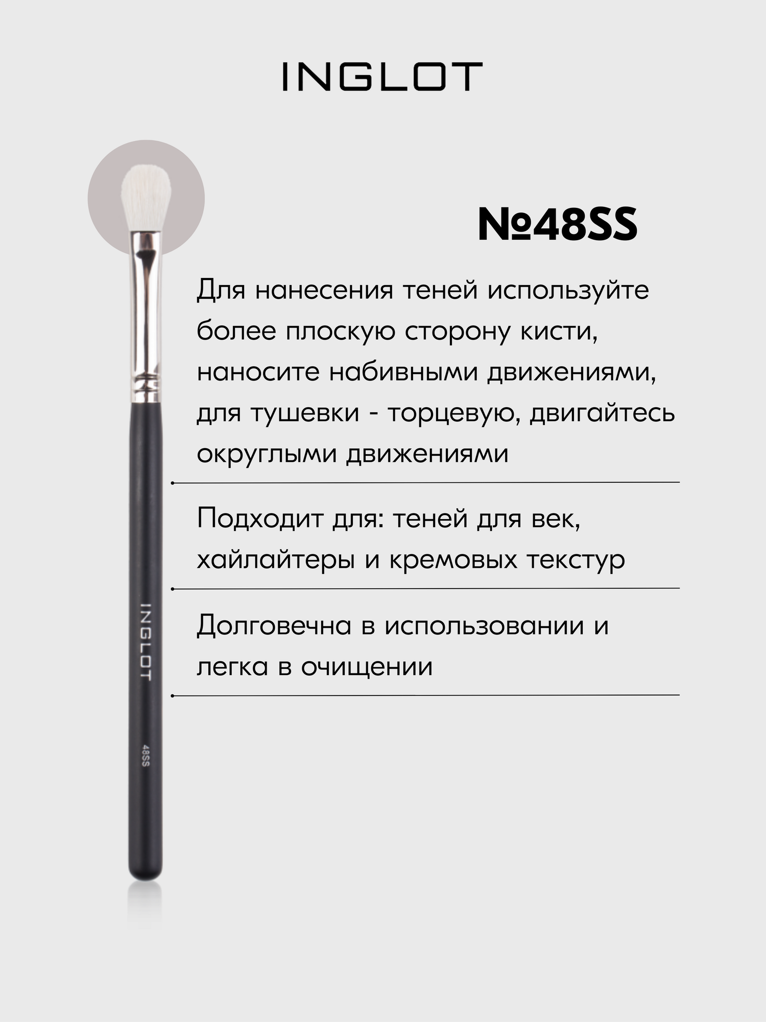 Кисть для макияжа Inglot Makeup Brush 48 - это овальная кисть для век, разработанная специально для легкого и полупрозрачного нанесения теней на складку века и орбитальную косточку.