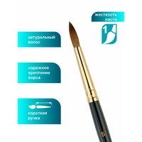 Круглая кисть из колонкового ворса удобно располагается в руке за счет короткой длины ручки, что позволяет с комфортом работать над деталировкой изображаемого объекта. Волос колонка очень эластичен, а укороченная выставка придает еще большую упругость, что делает эту кисть идеальной для работы как в акварельной, так и в пастозной технике. Анодированная алюминиевая втулка имеет прочное двойное сцепление с черной матовой ручкой и прекрасно сохраняет форму пучка в виде конуса с идеальным зауженным кончиком, что, в свою очередь, позволяет писать крупными плотными мазками, а также вести тонкую изящную линию.