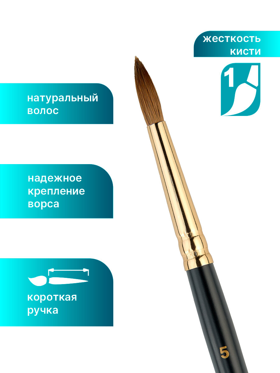 Художественная кисть Roubloff Серия 1115 натуральный колонок, круглая, ручка короткая №5.