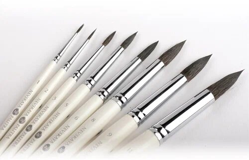 Кисть Невская Палитра, для акварели, №9 белка, круглая, деревянная, с длинной ручкой: сравнение цен, характеристики, фото, актуальное наличие и цены.