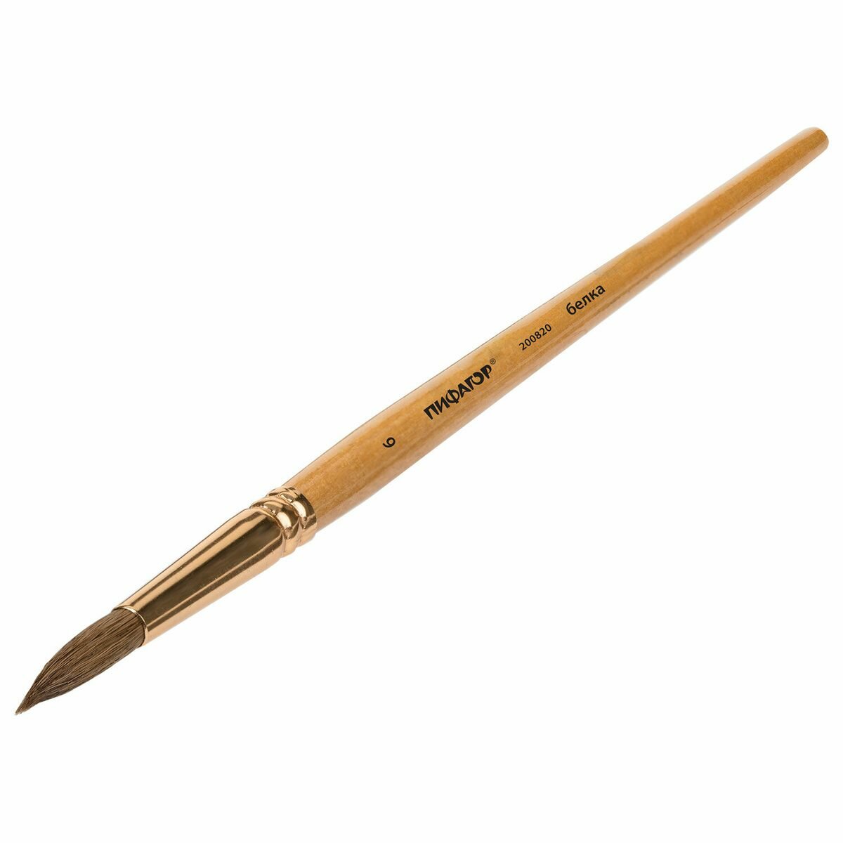 Купить Кисть Пифагор, белка, круглая, №6, деревянная лакированная ручка, с колпачком, пакет с подвесом (200820), 15шт. с доставкой по всей России.