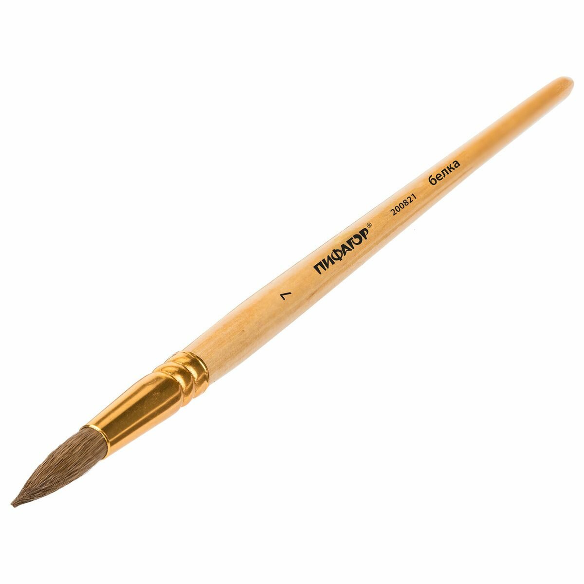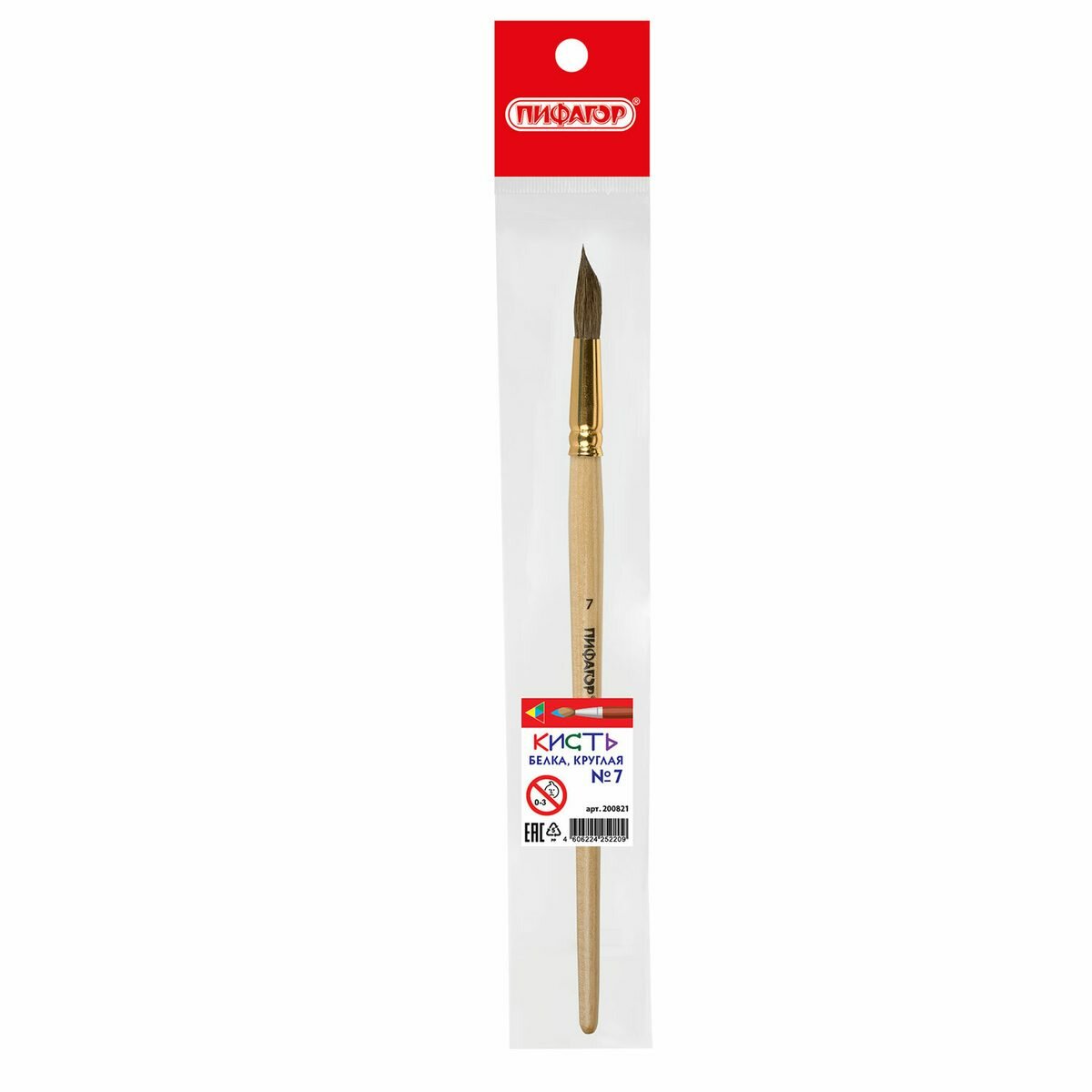 Купить Кисть Пифагор, белка, круглая, №7, деревянная лакированная ручка, с колпачком, пакет с подвесом (200821), 10шт. с доставкой по всей России.
