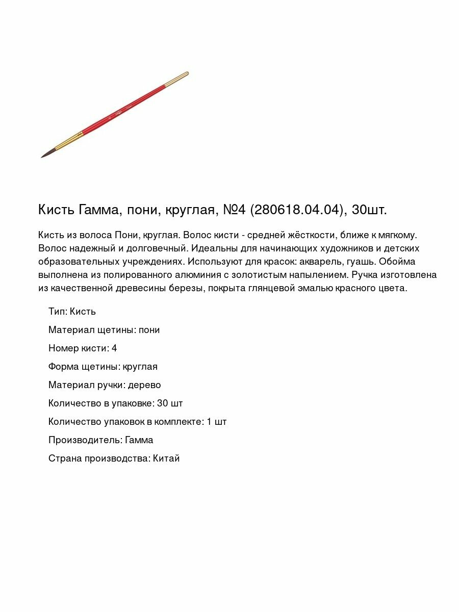 Купить Кисть Гамма, пони, круглая, №4 (280618.04.04), 30шт. с доставкой по всей России. Кисть Гамма, пони, круглая, №4 (280618.04.04), 30шт.: сравнение цен, характеристики, фото, актуальное наличие и цены.