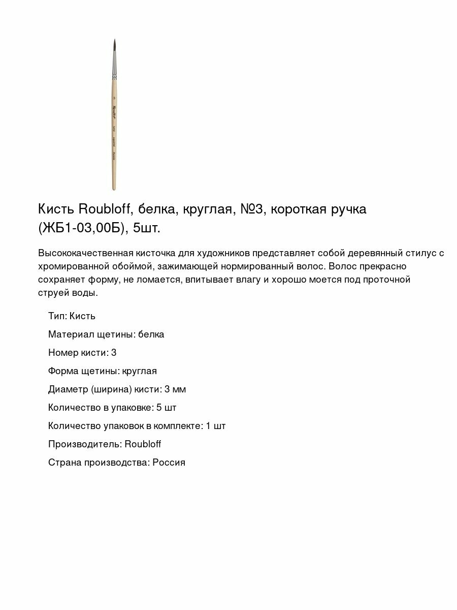 Кисть Roubloff, белка, круглая, №3, короткая ручка (ЖБ1-03,00Б) – высококачественная кисть для художников, которая станет незаменимым инструментом для создания художественных работ.