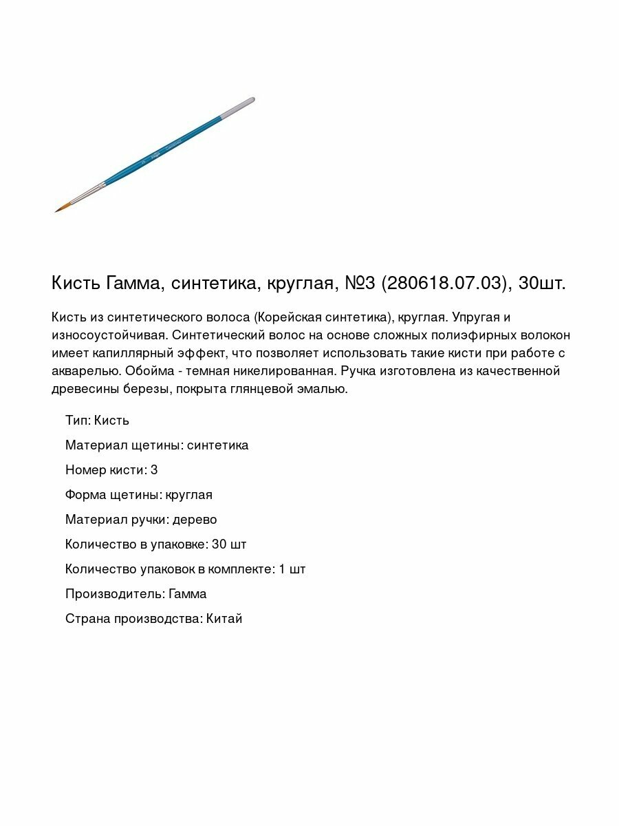 Купить Кисть Гамма, синтетика, круглая, №3 (280618.07.03), 30шт. с доставкой по всей России. Кисть Гамма, синтетика, круглая, №3 (280618.07.03), 30шт.: сравнение цен, характеристики, фото, актуальное наличие и цены.