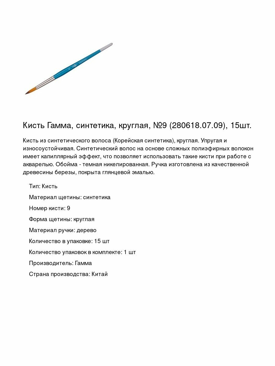 Купить Кисть Гамма, синтетика, круглая, №9 (280618.07.09), 15шт. с доставкой по всей России. Кисть Гамма, синтетика, круглая, №9 (280618.07.09), 15шт.: сравнение цен, характеристики, фото, актуальное наличие и цены.