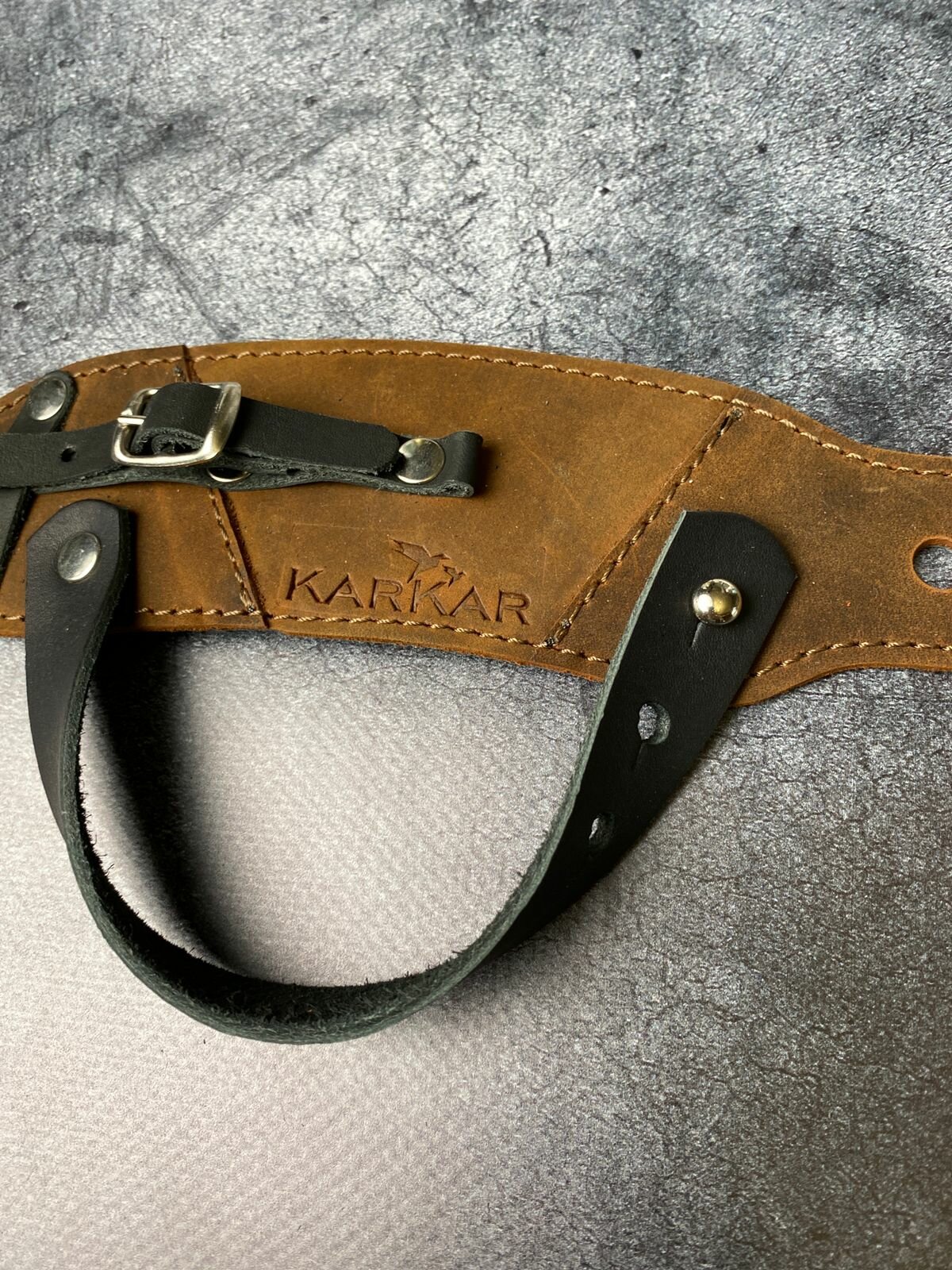 Ремень изготовлен из натуральной кожи, что гарантирует его долговечность и прочность. Благодаря этому, он не только прослужит вам долгое время, но и сохранит свой первоначальный вид даже при активном использовании.