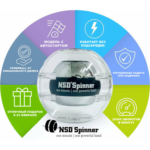 NSD PowerBall 588 Metal Autostart (вес – более 350 грамм) - гироскопический кистевой тренажер с функцией Автостарта, используется для укрепления и тренировки мышц кисти, всей руки и пальцев. Также, Powerball применяют в качестве профилактики, например, при восстановлении после травм. Тренажер активно используется профессиональными спортсменами, музыкантами, работниками офисов и водителями, страдающими от «туннельного синдрома». Гироскопический эспандер NSD Powerball позволит сделать кисти и руки намного крепче. Грамотно продуманная конструкция и технология работы дает возможность добиваться эффективных результатов. Защитный корпус ротора помогает избежать поломки при падении с небольшой высоты. За счет своего компактного размера, Вы можете брать тренажер с собой в любые поездки и походы, тренируясь где и когда Вам удобно. Практичная и удобная резиновая вставка обеспечивает удобство хвата PowerBall. Тонкая калибровка позволяет избежать возникновения вибрации гироскопического эспандера даже при высокой скорости оборотов. Тренажер раскручивается с помощью шнурка, идущего в комплекте. Инструкция проста - раскручивайте шар круговыми движениями кистью до тех пор, пока будут силы его удерживать. Все, кто хоть раз начинал пользоваться подобными гироскопическими тренажерами, приходили к мнению, что это лучшая возможность и лучшие упражнения для тренировки всей руки, начиная от пальцев и кисти, заканчивая бицепсом и плечом. Тренажер работает без использования батареек и других источников питания.