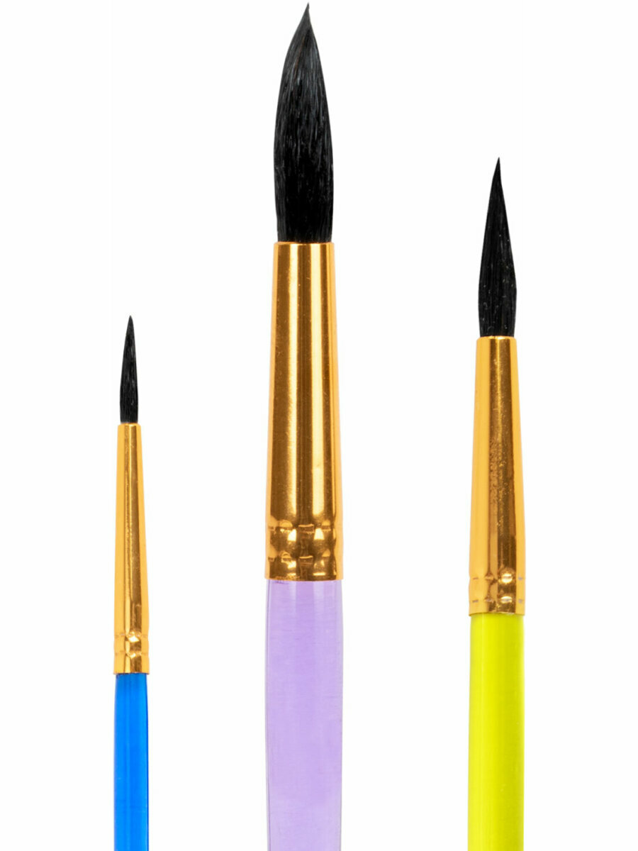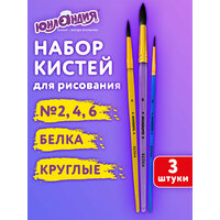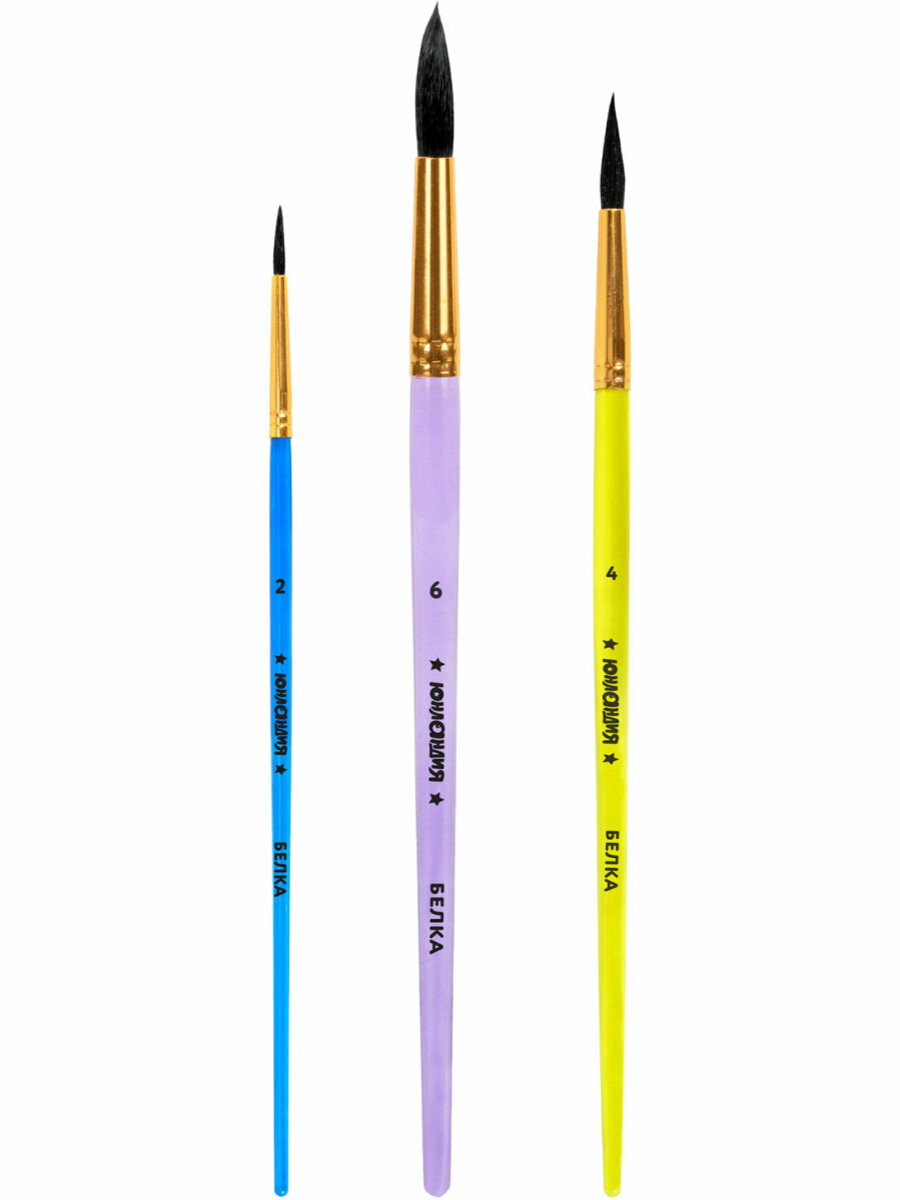 Купить Кисти для рисования в школу набор 3 штуки, кисточки круглые № 2 4 6, белка, Юнландия, 201071 с доставкой по всей России.