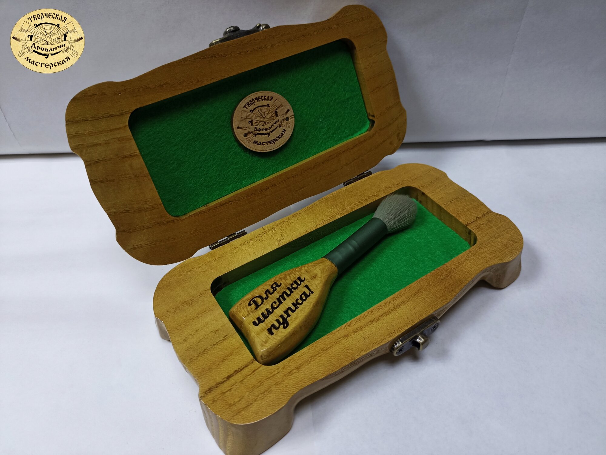 Часто люди сталкиваются со сложным выбором. Что подарить человеку, у которого и так все есть? В такой ситуации приходится долго обдумывать свой презент. Чем можно удивить? Его можно удивить оригинальным подарком! Выше представлен вариант от нашей мастерской которым можно поразить виновника торжества! Кисть для чистки пупка ручной работы! В оригинальной шкатулке из тутовника !