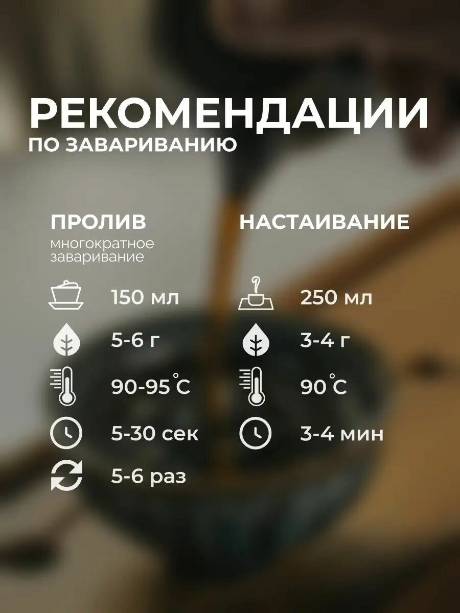 Хорошо прогрейте посуду перед завариванием, будь то гайвань или исинский чайник. Используйте кипяток. Фарфор усилит аромат, глина сделает вкус более округлым и выраженным. Способ приготовления чая проливом позволит получить несколько вкусов из одной заварки. Настаивание сэкономит время и даст один вкус, но максимально проявленный. Варка на открытом огне раскроет потенциал чая наиболее полно, чай выйдет тельным, насыщенным и мощным.