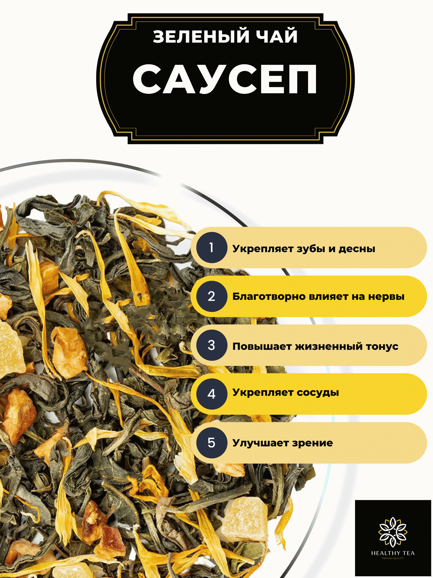 Китайский Зеленый чай с яблоком, ананасом и календулой Саусеп от Полезный чай / HEALTHY TEA, 250 г: сравнение цен, характеристики, фото, актуальное наличие и цены.