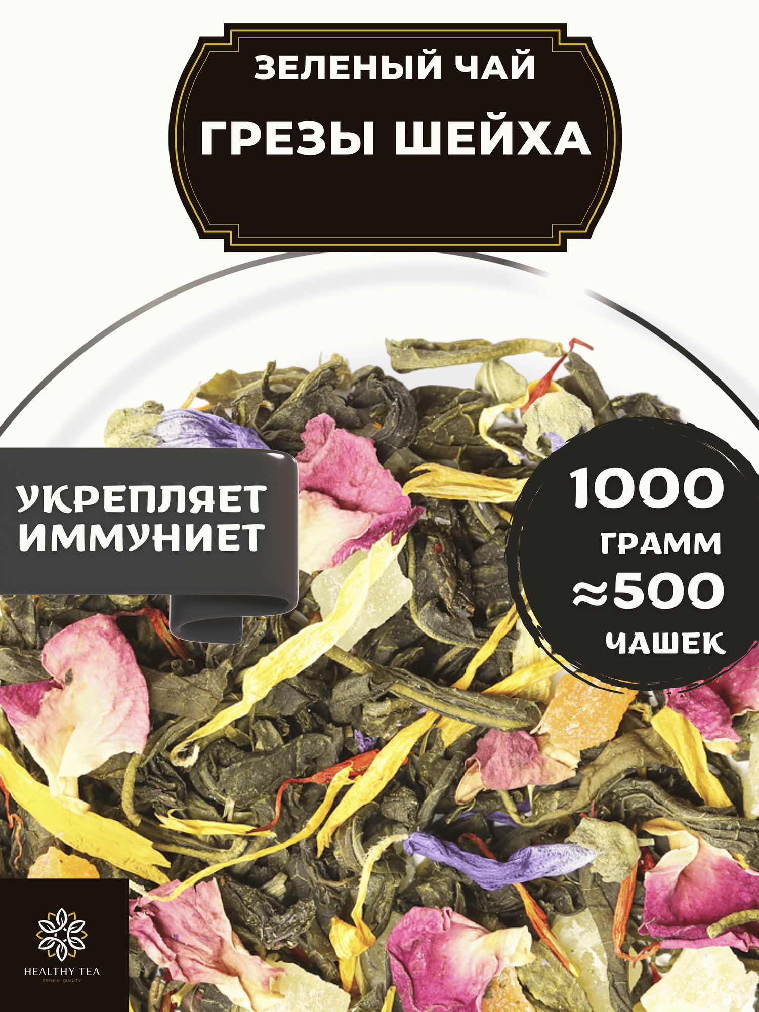 Чай Грезы шейха является настоящим кладом для ценителей благородного напитка. Насладитесь этим замечательным сочетанием великолепных ингредиентов.
