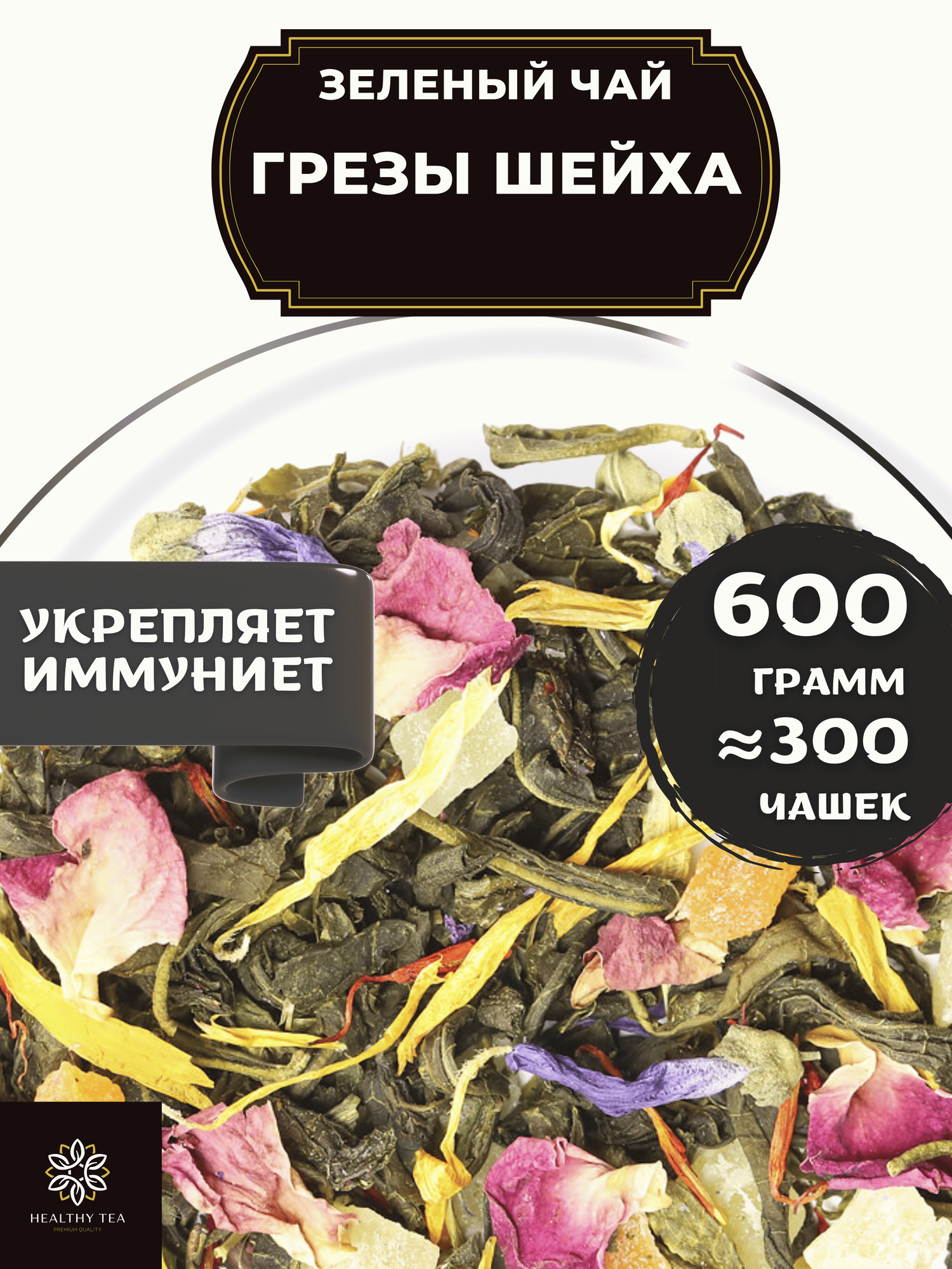Чай Грезы шейха является настоящим кладом для ценителей благородного напитка. Насладитесь этим замечательным сочетанием великолепных ингредиентов.