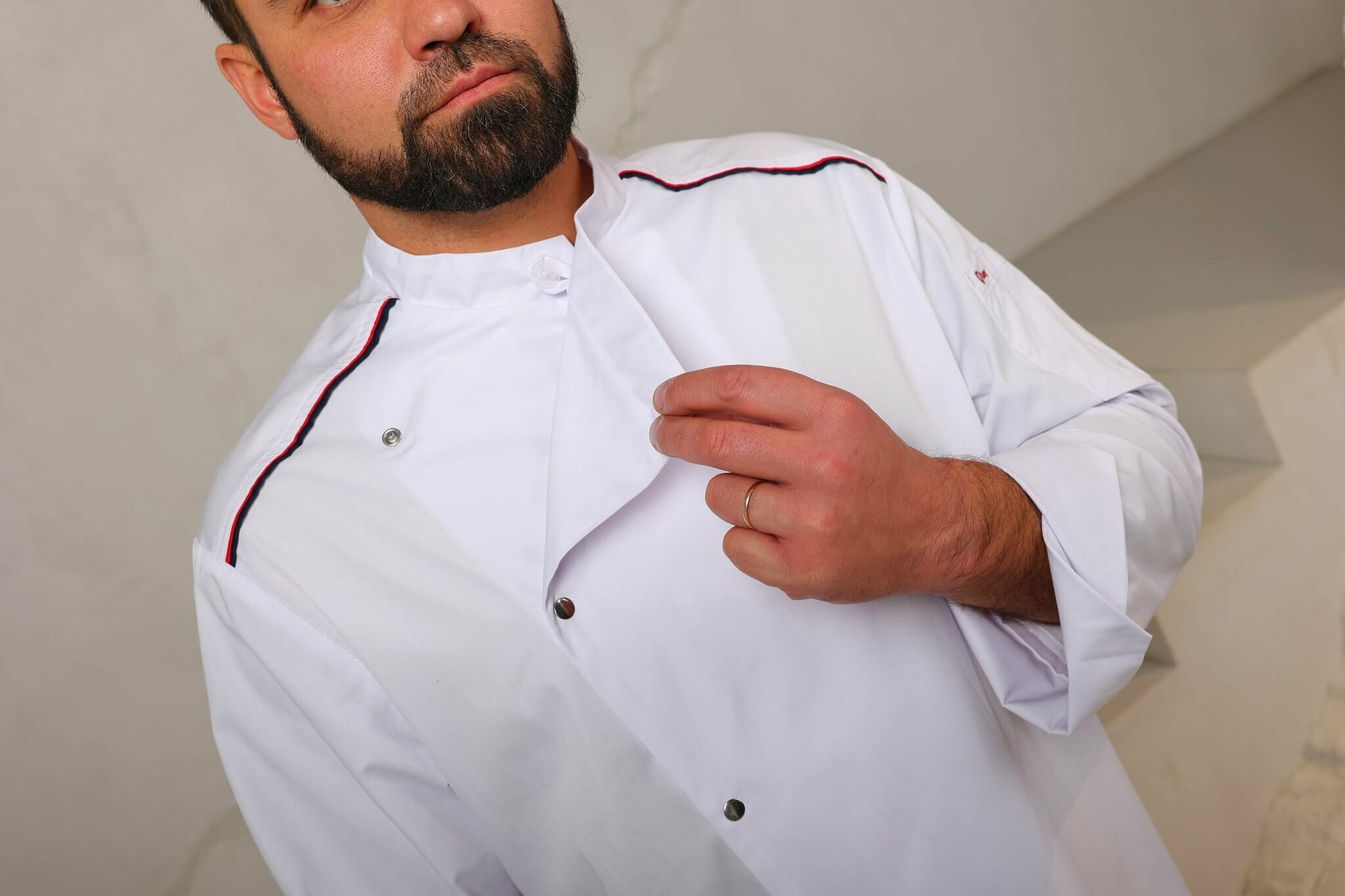 Китель повара вилан мужской, тк. ТиСи Твил, размер 44-46, рост 182-188, Белый, кант красный, синий: сравнение цен, характеристики, фото, актуальное наличие и цены.