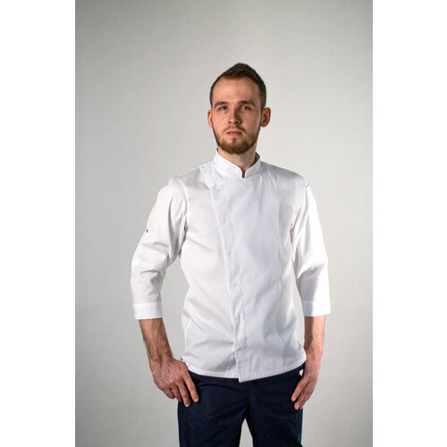 Поварской китель для мужчин 44-46 размера, белого цвета, сделан из лёгкой, прочной ткани. Материал хорошо защищает от пыли и пара. В создании были учтены современные требования к одежде. Полуприлегающий силуэт подойдёт для всех типов фигур. Рукав 3/4, регулируется по ширине манжета. Дополнительный патик для фиксации длины рукава.