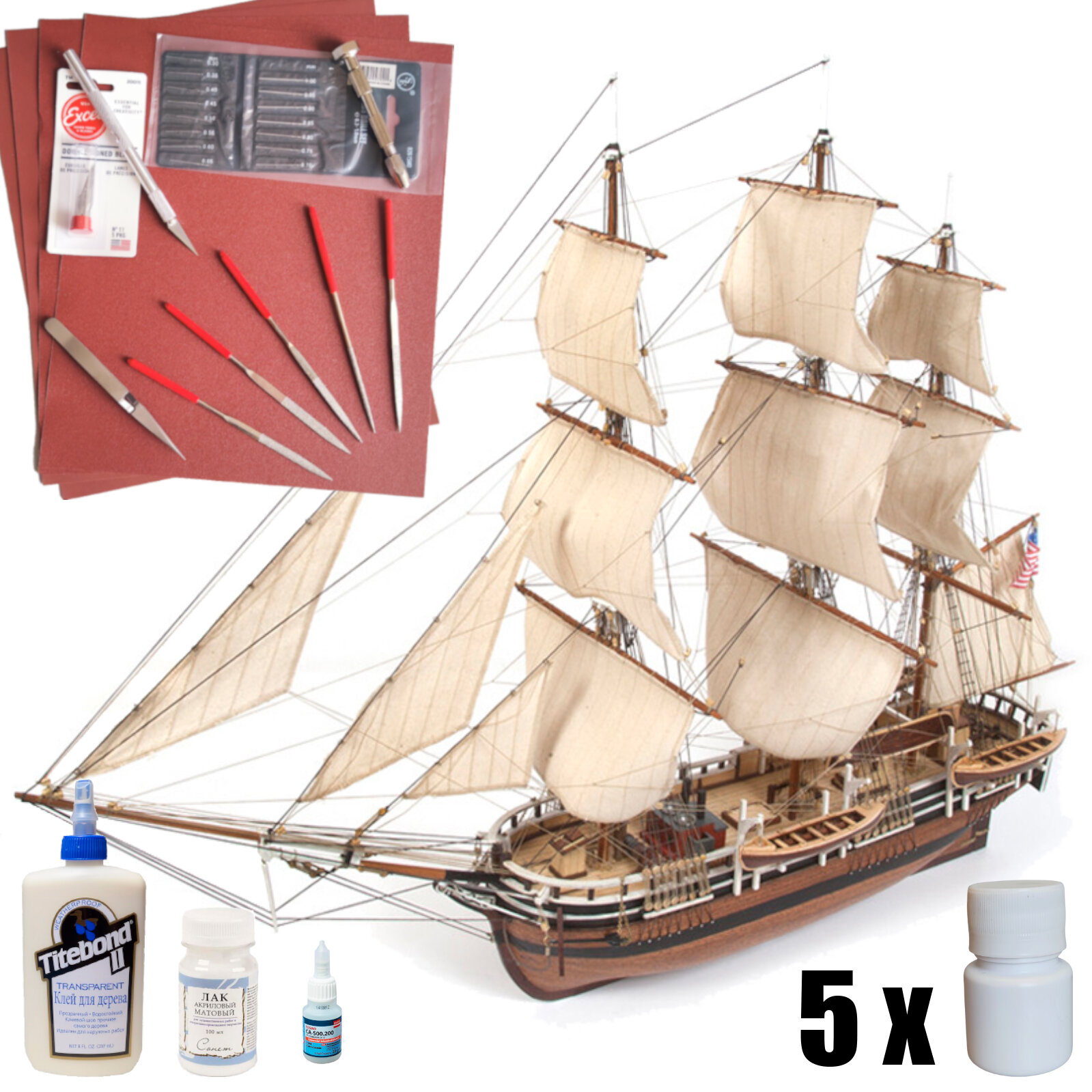 Китобойное судно Essex (Моби Дик), 350 часов, 735х552х225 мм, М.1:60, сборная модель корабля из дерева плюс инструменты и краски, лак и клеи, OcCre (Испания)