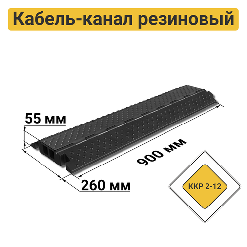 Характеристики товара Корпус: Резина Крышка: Эластичный черный пластик Кол-во каналов: 2 Нагрузка: 12 т Сечение канала: 32х32 мм Размеры: 900х260х50 Температура эксплуатации: -50°C до +60°C Масса: 7,5 кг