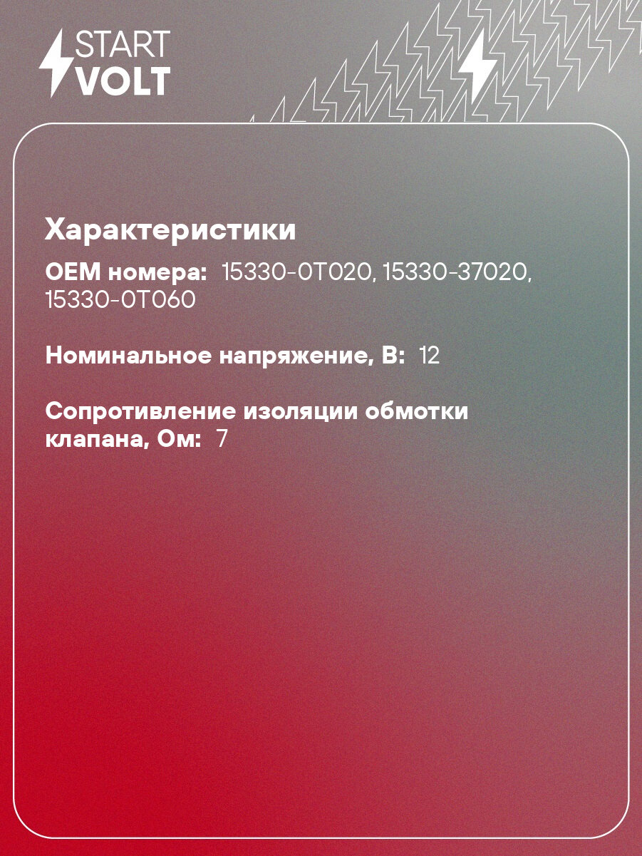 Купить Клапан электромагнитный регулировки фаз ГРМ для автомобилей Toyota Corolla E150 (07-) 2ZR-FE 1.6i выпускной SVC 1903 StartVolt с доставкой по всей России.