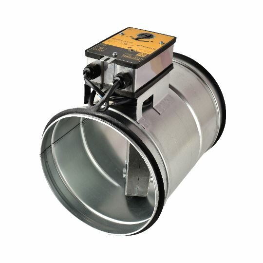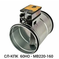 Противопожарный клапан СЛ-КПК 60НО - MB220-160 круглого сечения с пределом огнестойкости EI 60, нормально открытый (огнезадерживающий), электропривод с возвратной пружиной. Размеры клапана (диаметр)-160 мм, длина 400 мм, вес 3,9 кг. Клапан изготавливается с ниппельным соединением, возможно изготовление на фланцах. Привод устанавливается снаружи корпуса и обеспечивает срабатывание клапана независимо от пространственной ориентации плоскости его установки. Корпус клапана изготавливается из оцинкованной стали. По индивидуальным заказам возможно изготовление из другой стали, типоразмера, с другим приводом, наличием клеммников, так же изготавливаем морозостойкие клапаны.