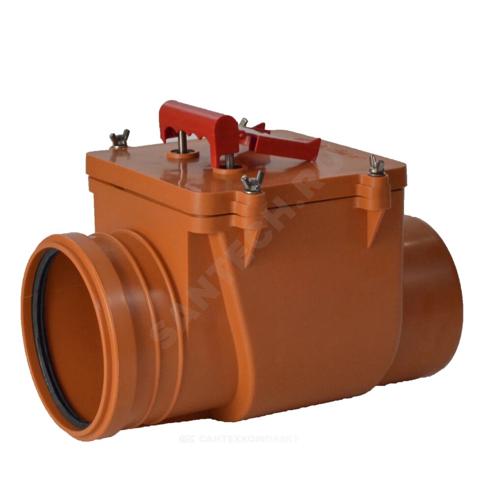 Состав изделия и комплектность Гайка-барашек – 4 шт; Шайба – 4 шт; Рукоятка затвора; Крышка; Толкатель; Заслонка*; Уплотнитель крышки; Раструбный вход; Болты крепления – 4 шт; Корпус; Гладкий выход под фановые трубы из ПП и ПВХ; Фиксатор рукоятки.