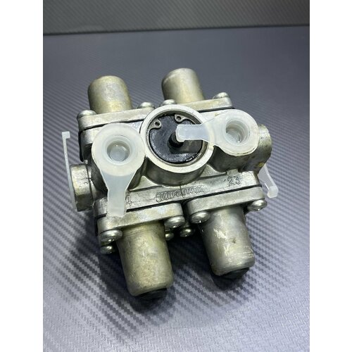 Этот клапан четырёхконтурный защитный используется для тормозных систем грузовиков, чтобы обеспечить безопасность и стабильную работу системы даже при повреждении одного из контуров. Благодаря конструкции, сохраняет давление в неповреждённых контурах и отключает неисправный участок.