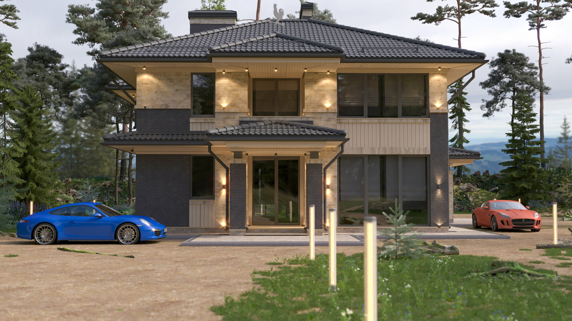 Проект представлен в виде альбома чертежей АР+КР+3D Визуализация и общая спецификация основных строительных материалов. Одним словом всё неоходимое для диалога между строителями и заказчиком, а также конечно чтобы определиться с бюджетом на строительство. В данном проекте заложены следующие решения: Фундамент - монолитный ленточный. Стены - керамический кирпич 380 мм с отделкой клинкерной плиткой по подсистеме утепления. Перекрытие пола на отметке 0,000 - пол "по грунту". Межэтажное перекрытие - сборное из пустотный плит перекрытия. Чердачное перекрытие - сборное из пустотный плит перекрытия. Покрытие кровли - цементно-песчаная черепица ЦПЧ или металлочерепица .