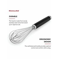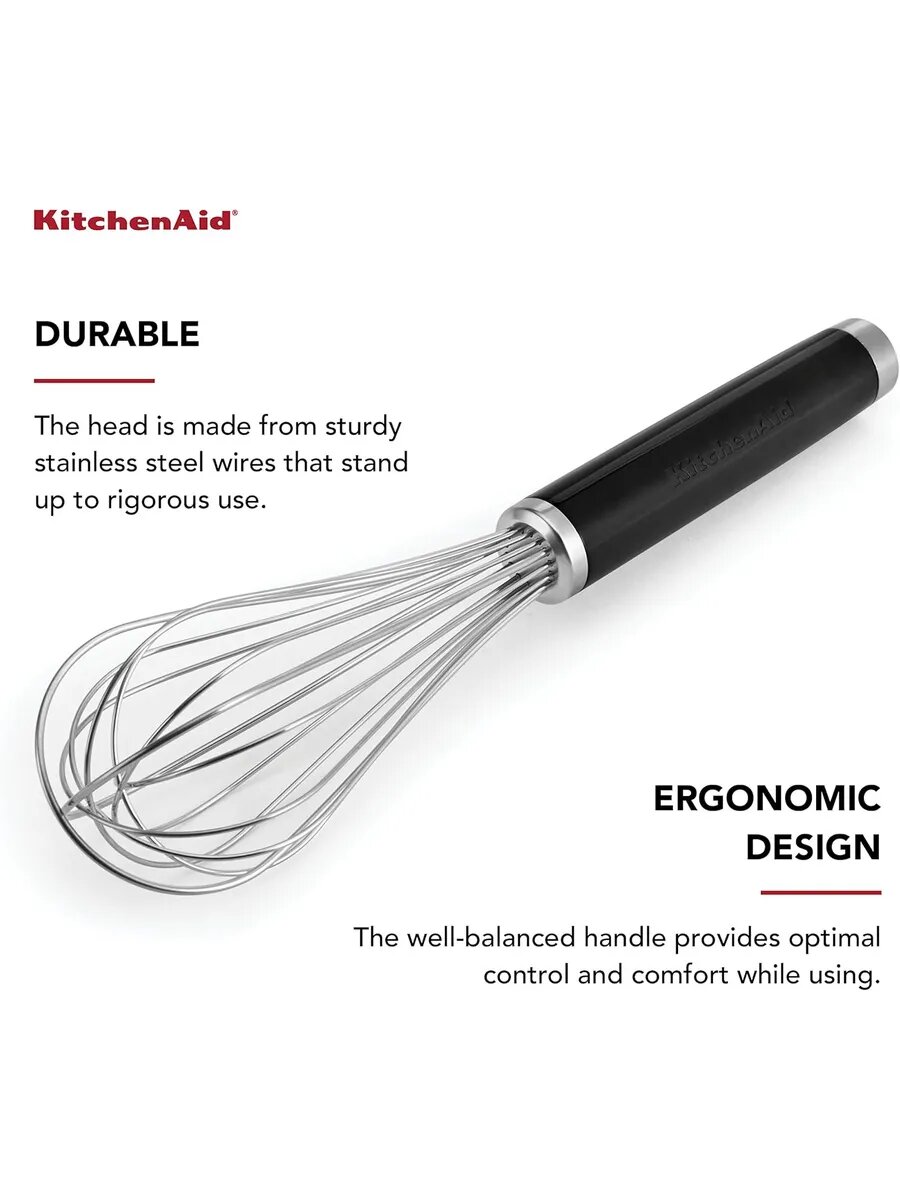 Венчик KitchenAid Utility Whisk быстро вводит воздух в ингредиенты для взбитых сливок, взбитых яичных белков и легких и воздушных глазурей. Прочная, долговечная головка изготовлена из нержавеющей стали с пластиковой ручкой и полностью безопасна для мытья в посудомоечной машине для легкой очистки. Глянцевая ручка из АБС-пластика имеет тисненый логотип, хромированный валик из АБС-пластика. Проволочная головка идеально подходит для чаши любого размера, чтобы помочь с повседневными задачами по подготовке. Можно мыть в посудомоечной машине.