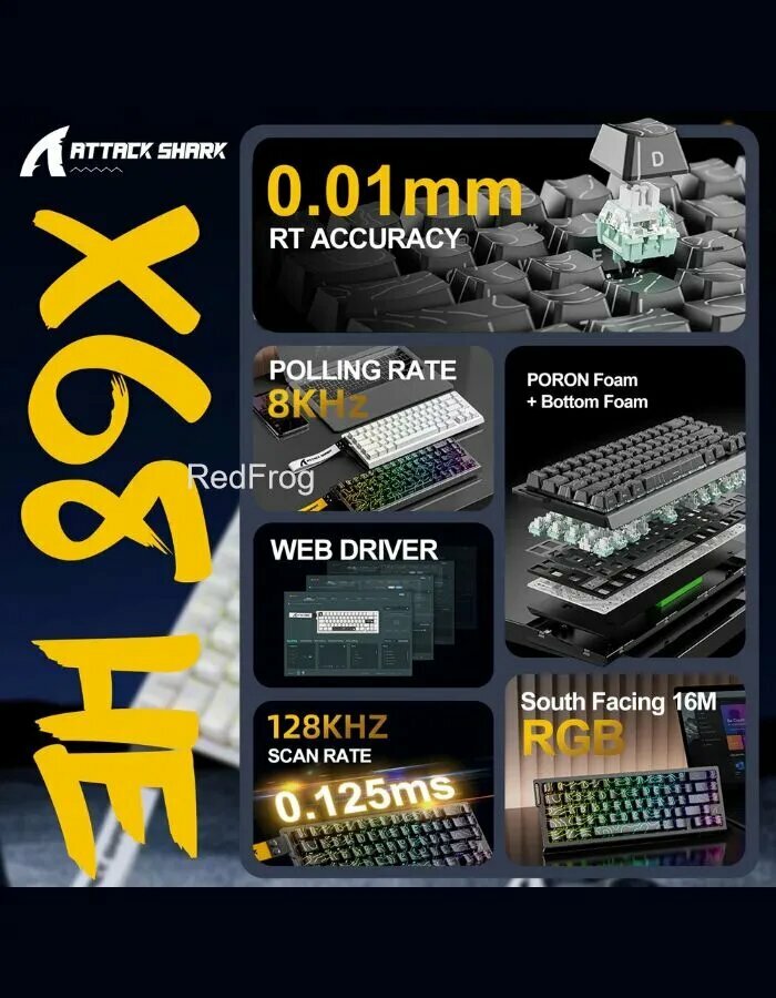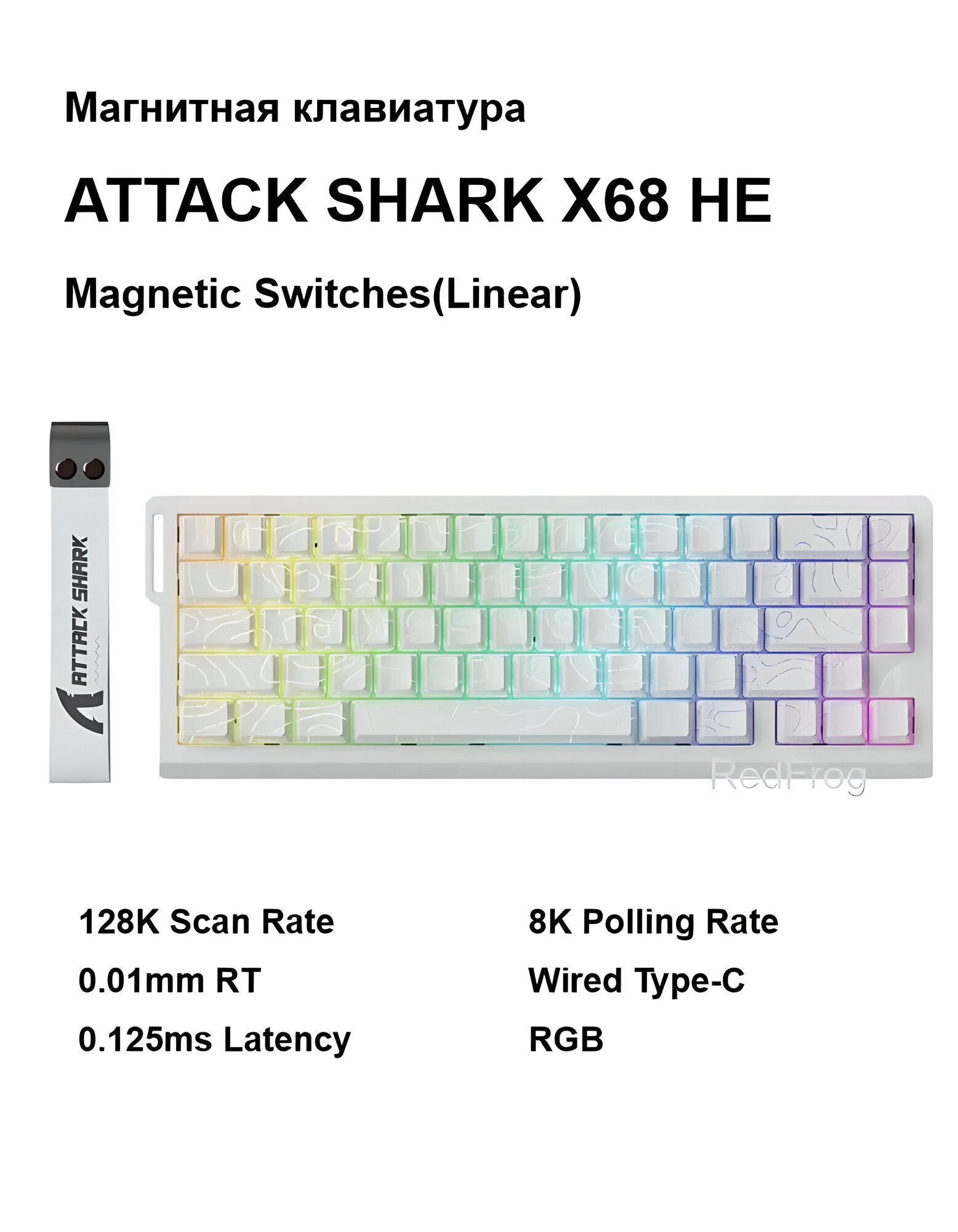 ATTACK SHARK Игровая клавиатура проводная X68 HE, Магнитная клавиатура, Английская раскладка, белый, лазурный: сравнение цен, характеристики, фото, актуальное наличие и цены.