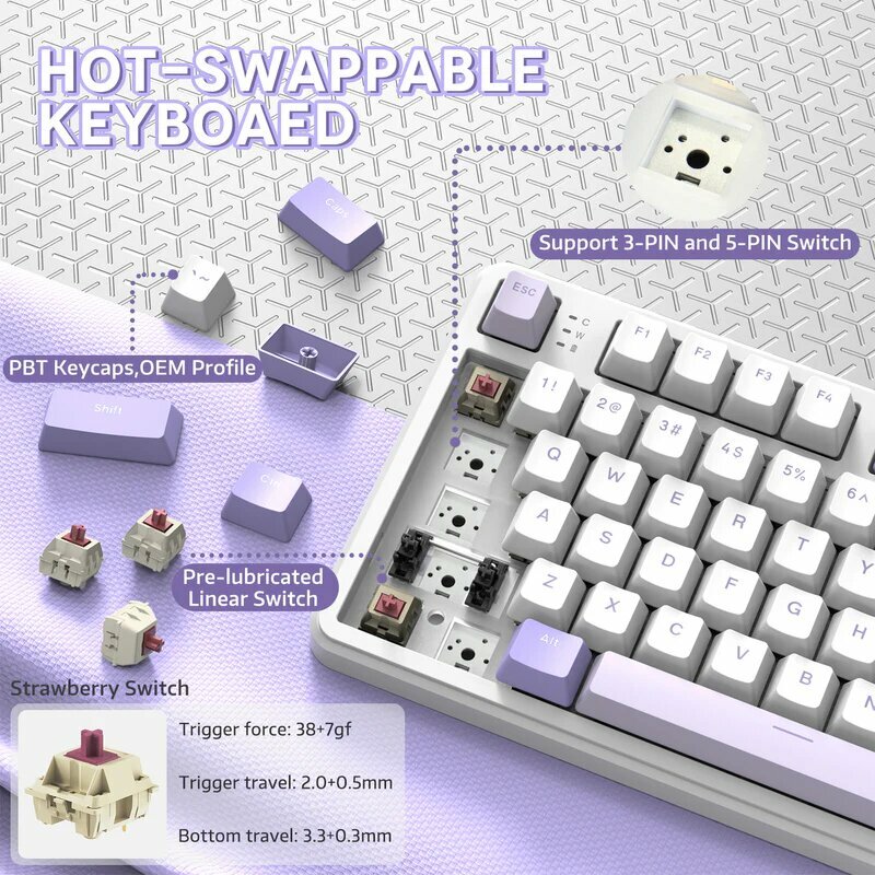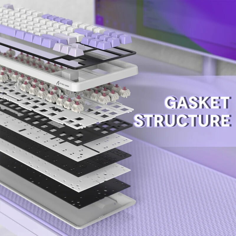 Купить Клавиатура Attack Shark X87, беспроводная, механическая, бело-розовая с доставкой по всей России.