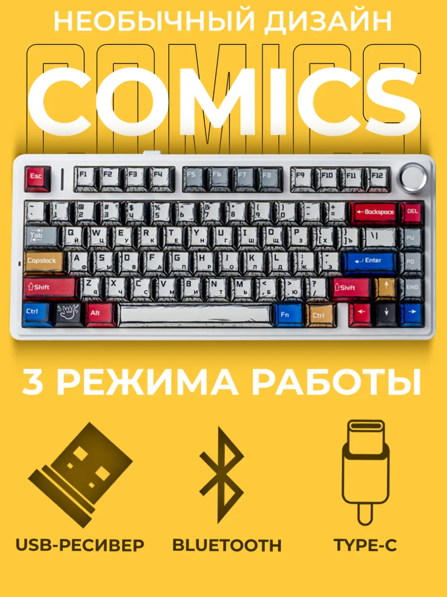 Клавиатура AULA F75, Bluetooth/USB/радиоканал, RGB-подсветка, механическая