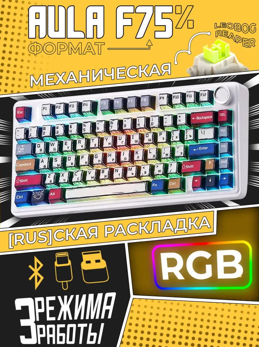 Купить Клавиатура AULA F75, Bluetooth/USB/радиоканал, RGB-подсветка, механическая с доставкой по всей России.