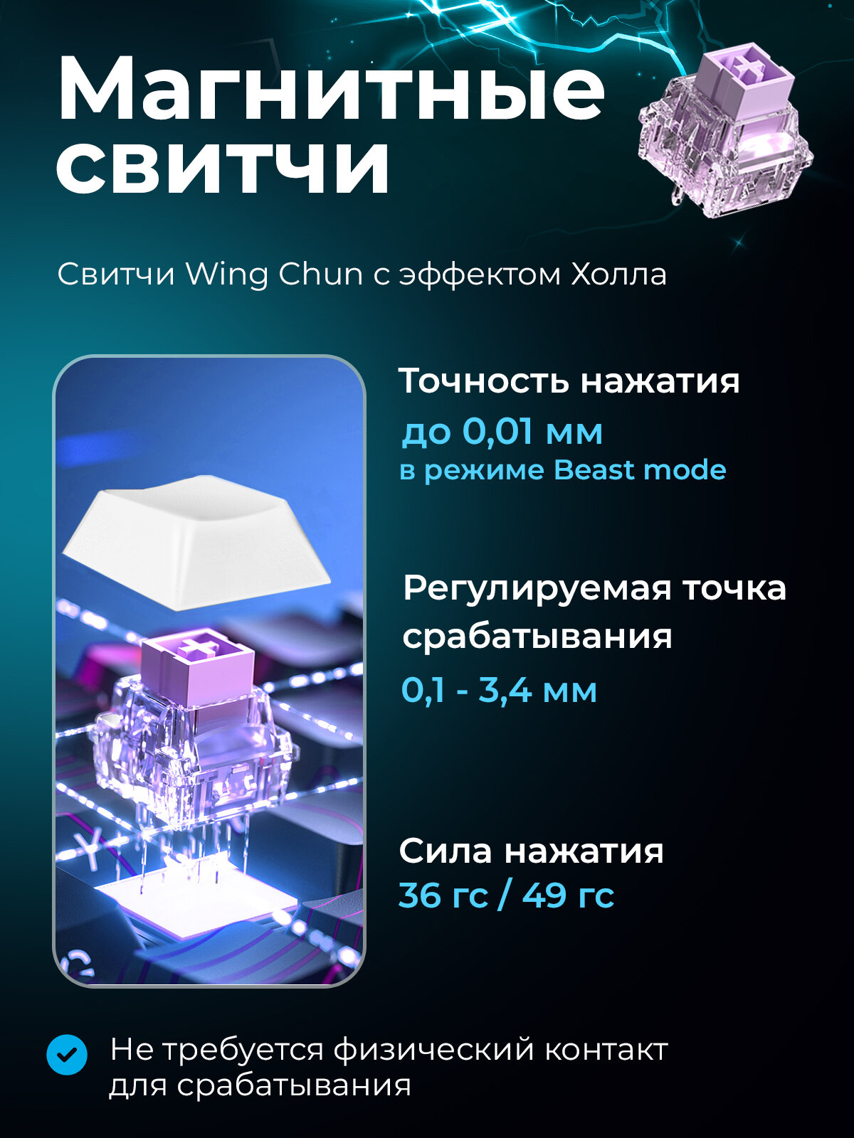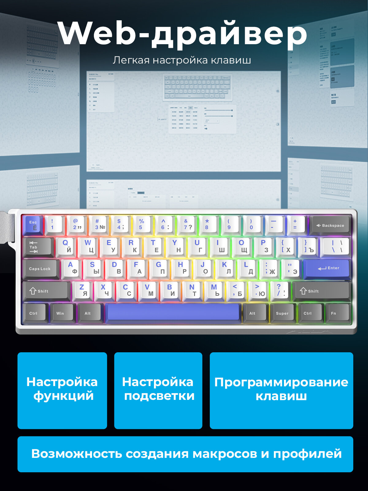 Клавиатура AULA WIN60HE MAX White-Gray-Blue, проводная, магнитные свитчи, Русская раскладка: сравнение цен, характеристики, фото, актуальное наличие и цены.