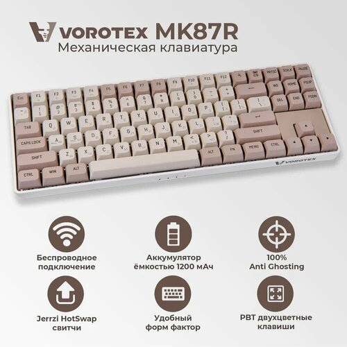 Купить Клавиатура беспроводная VOROTEX MK87R Yellow Switch, молочно-коричневый с доставкой по всей России.