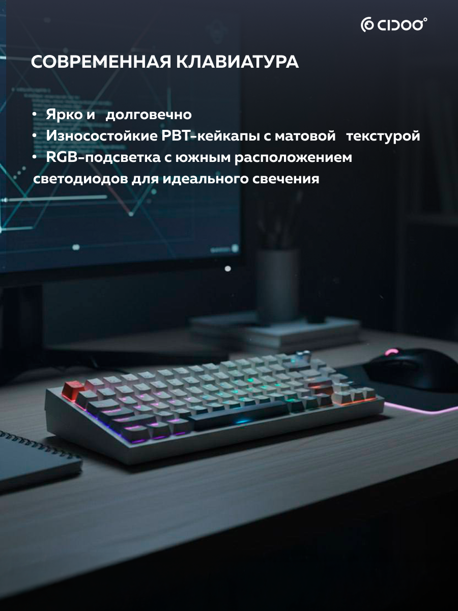 Программируемая функция VIA позволяет настраивать функции клавиш, макросы и освещение по своему вкусу. Вы можете переназначать клавиши, создавать макросы и даже настраивать световые эффекты RGB с помощью программного обеспечения VIA. Эта функция делает механическую клавиатуру CIDOO V75 отличным выбором для геймеров, программистов и всех, кто хочет получить индивидуальный опыт набора текста.