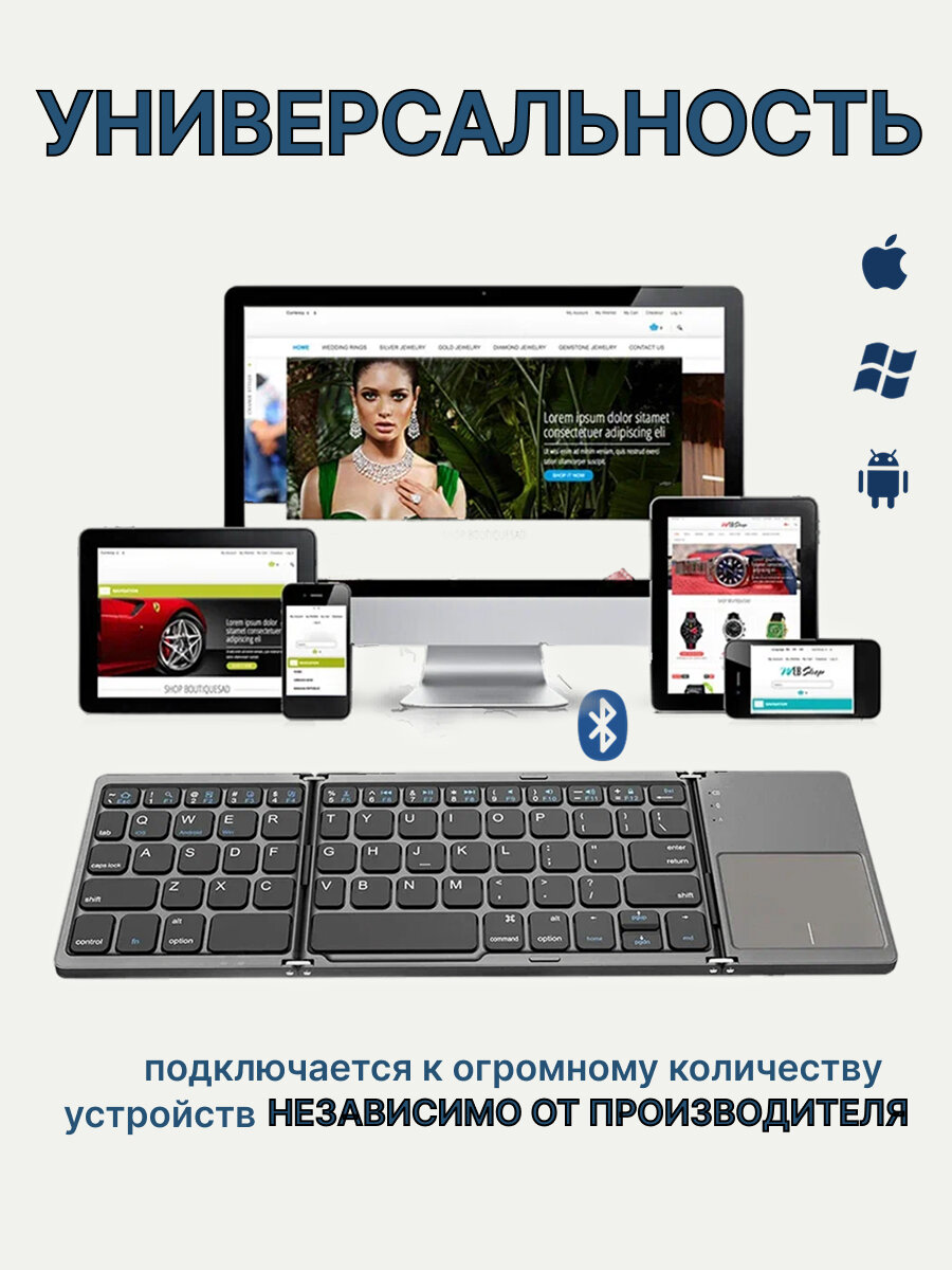Купить Клавиатура для планшета, телефона с тачпадом складная Bluetooth с доставкой по всей России. Клавиатура для планшета, телефона с тачпадом складная Bluetooth: сравнение цен, характеристики, фото, актуальное наличие и цены.